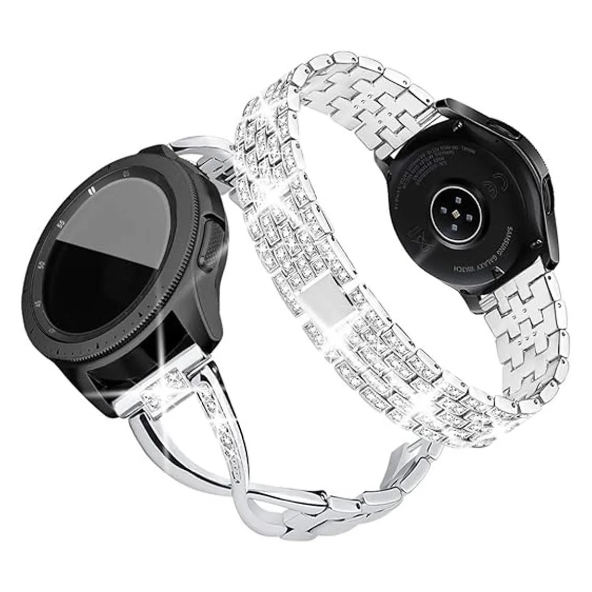 Supoix Compatible con Samsung Galaxy Watch 5 4 1.575 in, 1.732 in, Galaxy Watch de 1.65 pulgadas, Galaxy 3 de 1.61 pulgadas, Active 2 bandas, paquete de 2 correas de repuesto de metal brillante para mujer plata