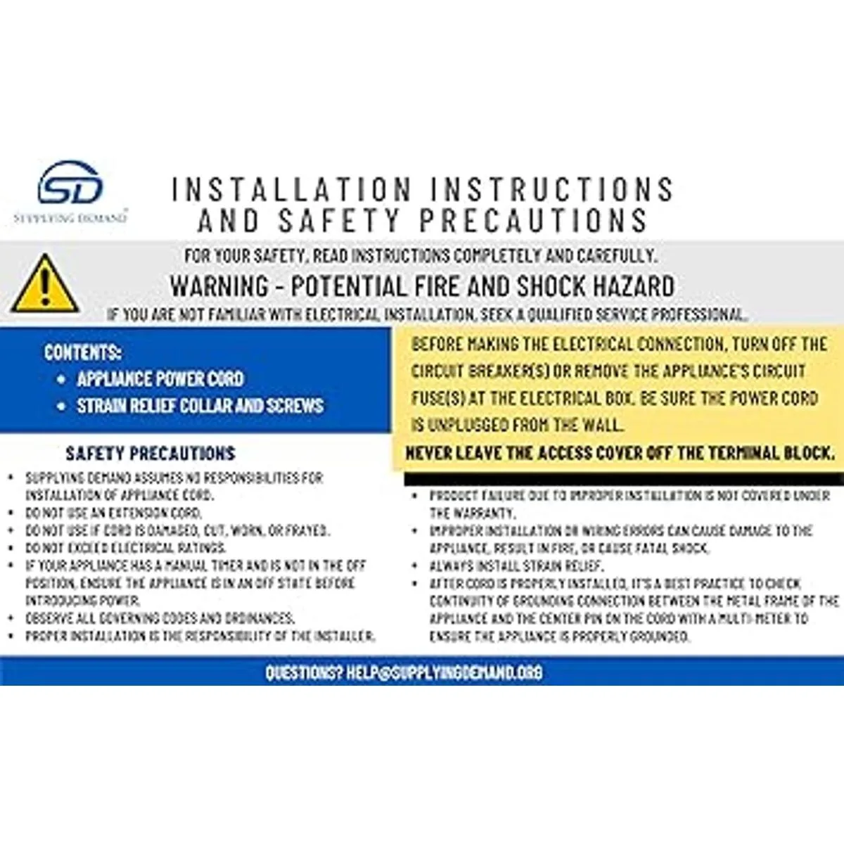 Supplying Demand Cable de alimentación para estufa de horno de 4 pies, 4 cables, 50 amperios, 62 y 82 AWG 250 voltios, compatible con todas las principales marcas residenciales