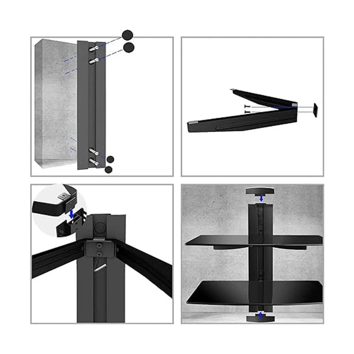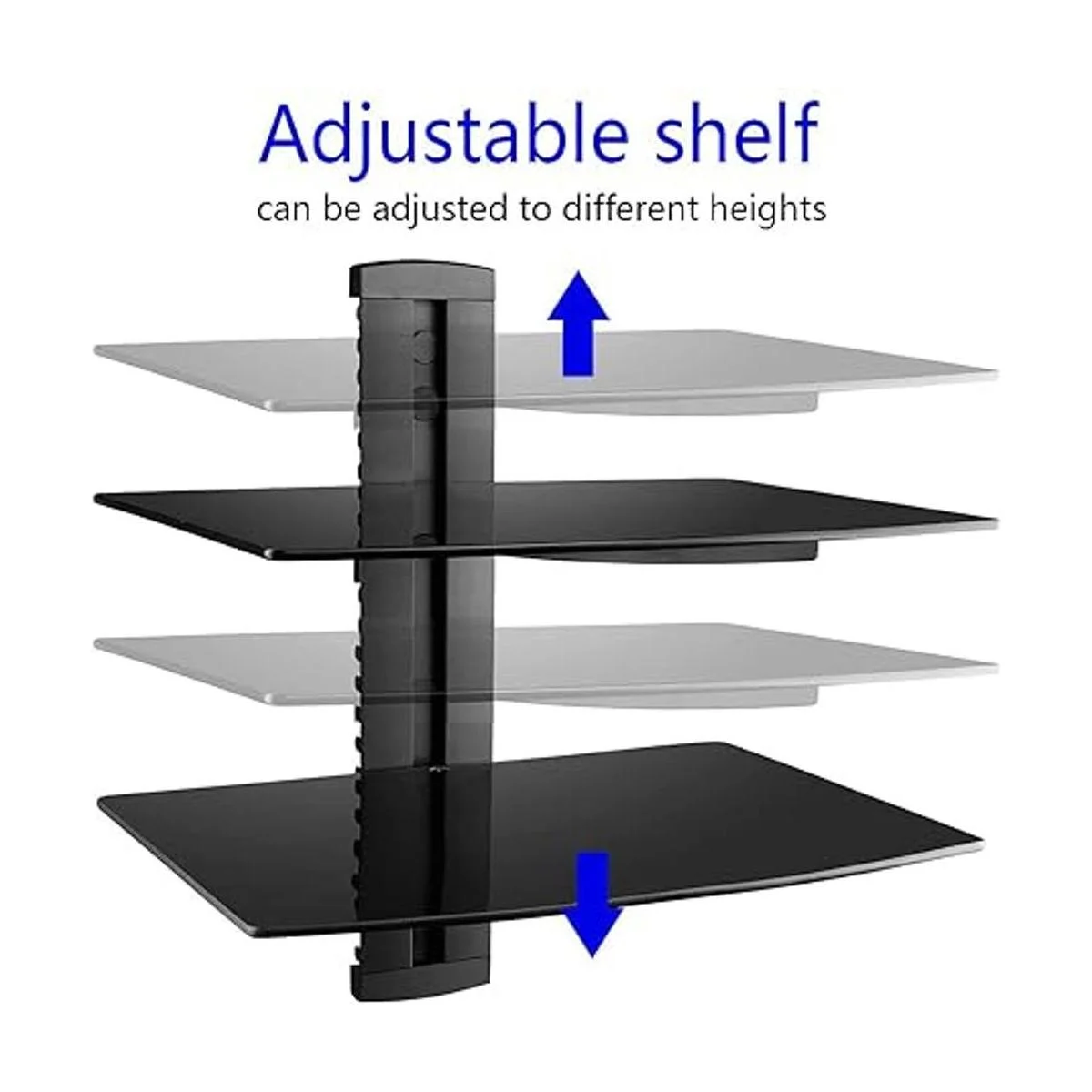 Durabilidad: nuestro estante montado en la pared está construido con un gran estante de vidrio templado reforzado 14.961 x 11.024 x 0.157 in cada estante, diseñado para reproductores de DVD/Bluray, cajas de satélite/cable, consolas de juegos, altavoces de sonido envolvente y de alta fidelidad.