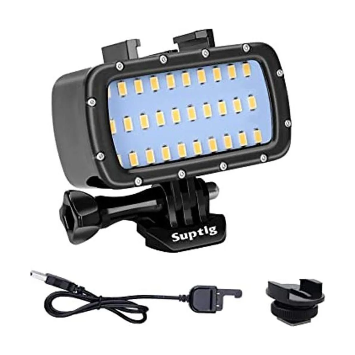 Suptig 30 LED de luz de vídeo impermeable luz subacuática compatible con GoPro Hero 10 Hero 9 Hero 8 Hero 7 Hero 5 Hero 6 Hero 4 y Canon Nikon Sony Olympus SLR cámaras impermeables 180 pies 180.4 ft