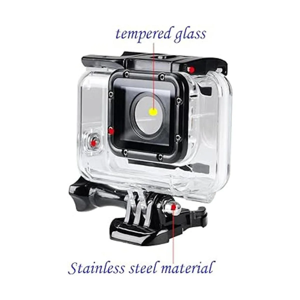Ultraduradero: el uso de la producción de acero inoxidable, puedes sumergirte en el mar sin tener que preocuparte por el óxido. Cristal endurecido en la parte delantera de la cámara, puedes hacer que tu cámara transmita mejor la luz tasa de transmisión de luz del 98. Toma imágenes más reales y hermosas.