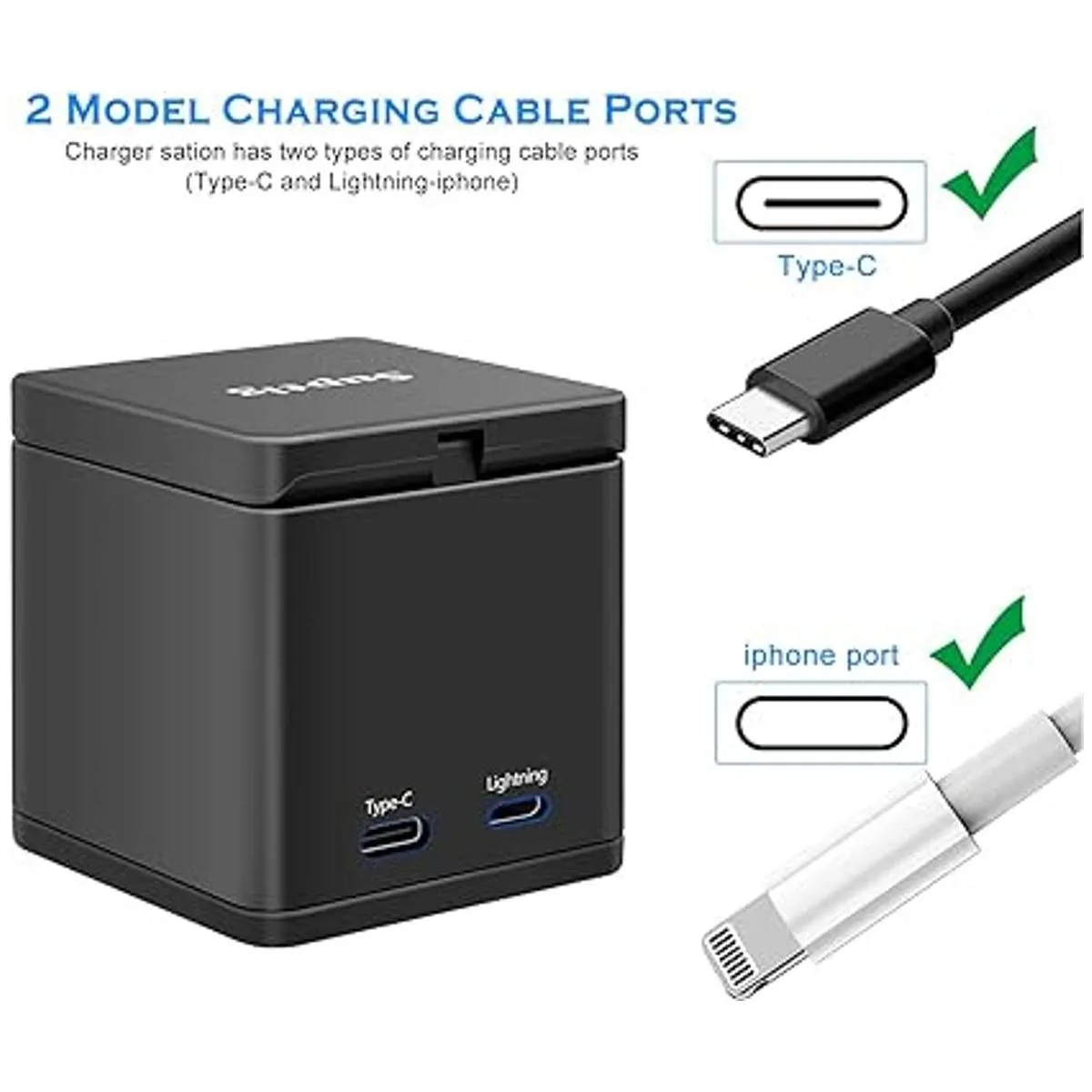 2 puertos de cable de carga: Suptig Charger Sation tiene dos tipos de puertos de cable de carga tipo C y Lightning, cargador sation integrado contra sobrecarga, sobretensión, sobrecalentamiento. Proporciona una protección superior para ti y tus dispositivos.