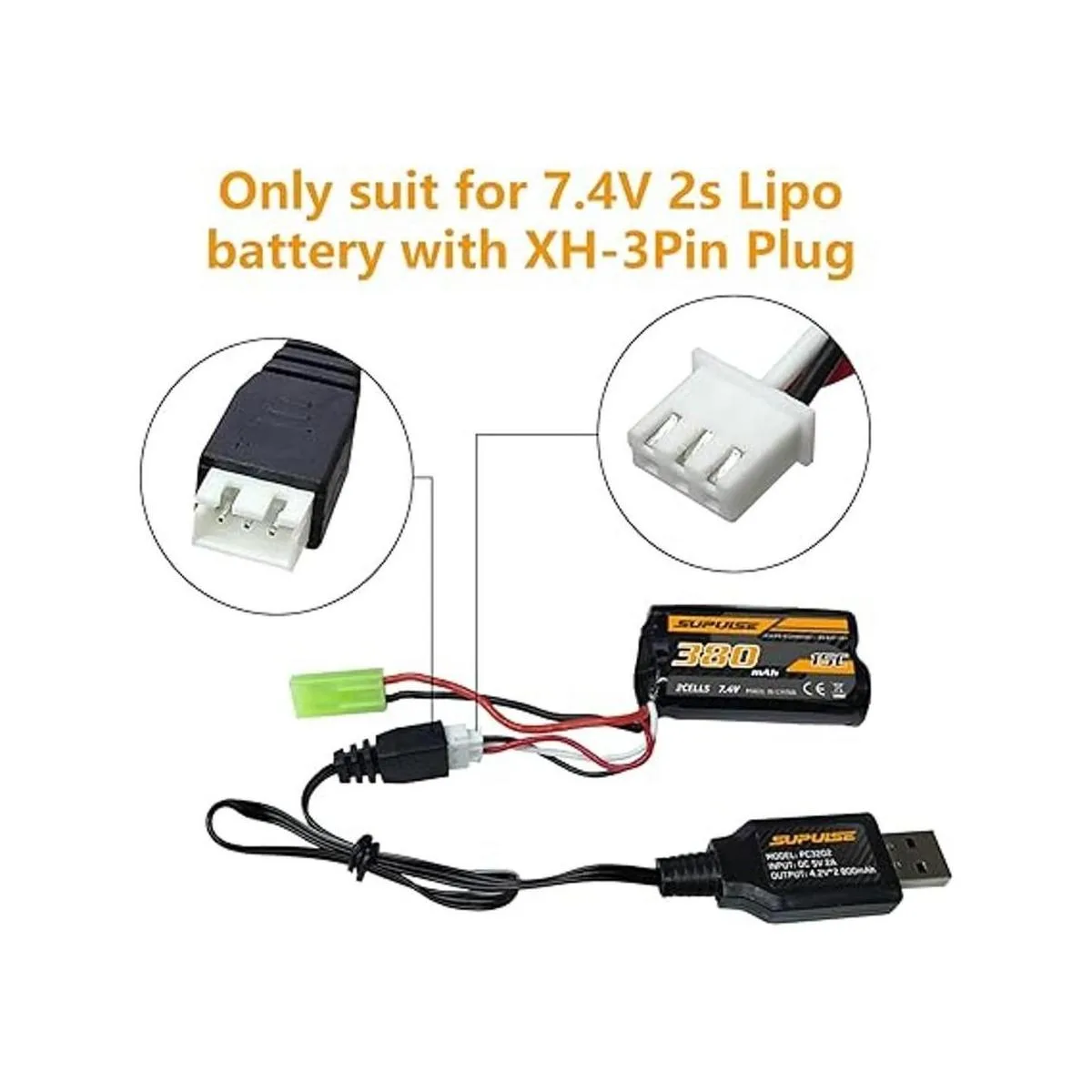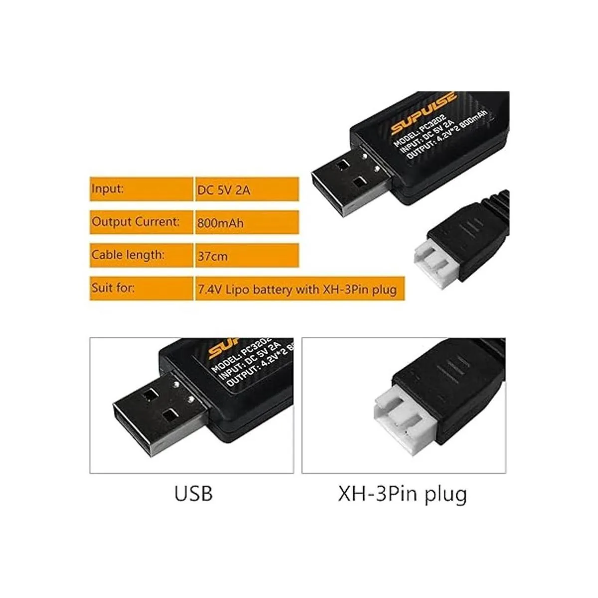 SUPULSE 2 cables de carga USB 2A para 2S 7.4V batería LiPo con enchufe XH3Pin para RC Quadcopter FPV drone RC barco RC camión RC avión RC