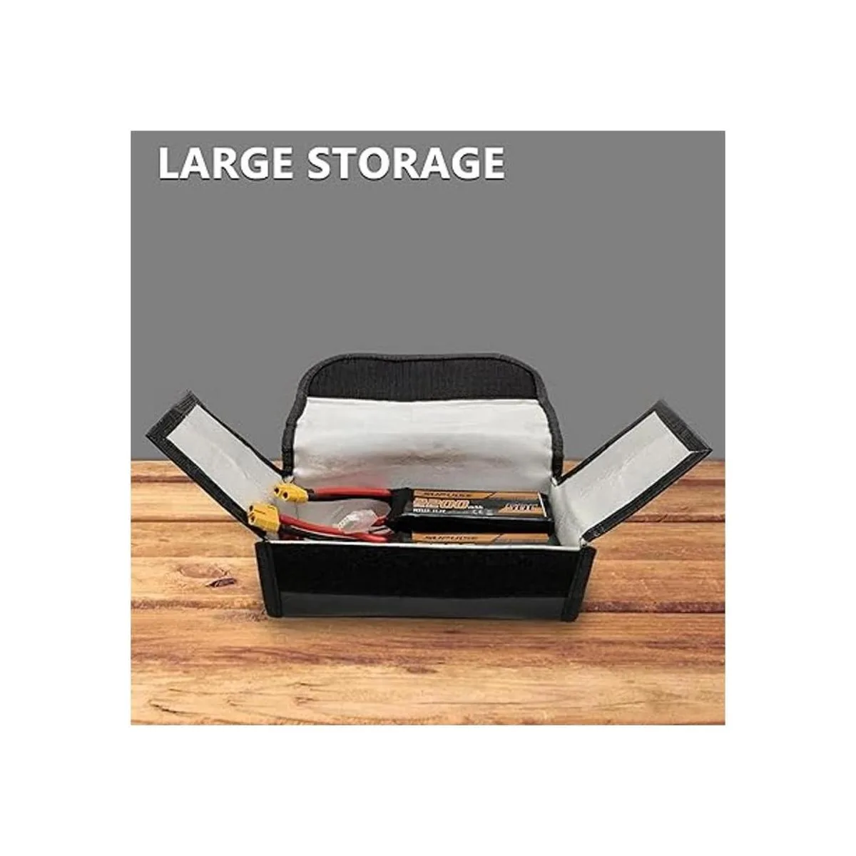 Protege diferentes baterías La bolsa de lipo SUPULSE es una manera conveniente de proteger tus baterías Lipo durante la carga, el tránsito y el almacenamiento. La bolsa de batería Lipo se puede utilizar para cargar y almacenar baterías LiPo, baterías NiMH, baterías de cámara, baterías secas y otras baterías recargables.