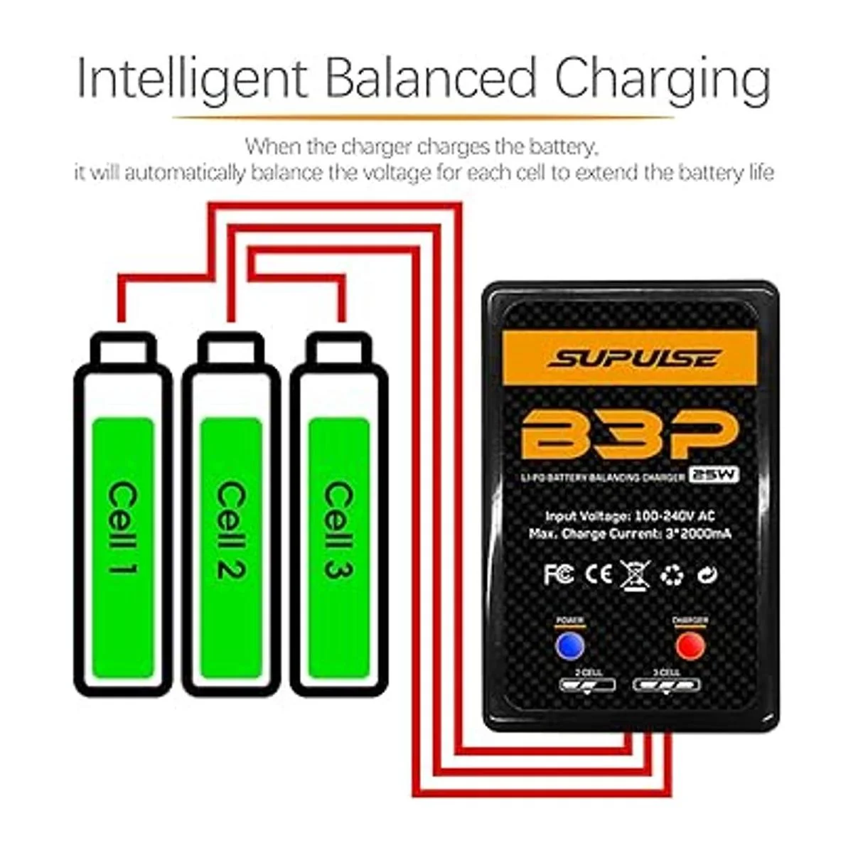 SUPULSE Lipo Charger Quick Charge 25W 2S3S RC Balance Charger AC 7.411.1V cargador rápido LiPo cargador de batería versión actualizada B3 Pro cargador compacto cargadores de batería RC Lipo Charger B3Pro