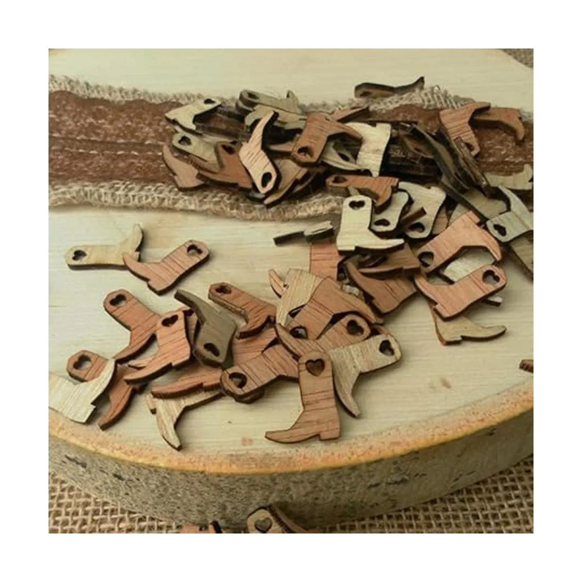 SUPVOX 100 piezas de recortes de madera sin terminar botas de vaquero de madera en miniatura, adornos para manualidades, decoración de bodas y fiestas