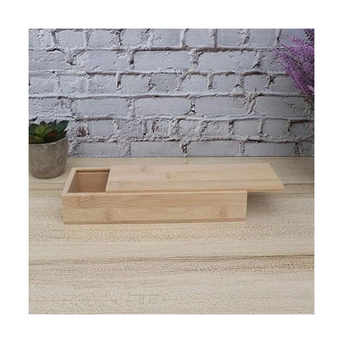 SUPVOX Wooden Pencil Box,Wood Brush Box with Sliding Lid for DIY Artist Tool and Brush Storage 7.4 x 2.8 x 1.2 inches, Rectangle