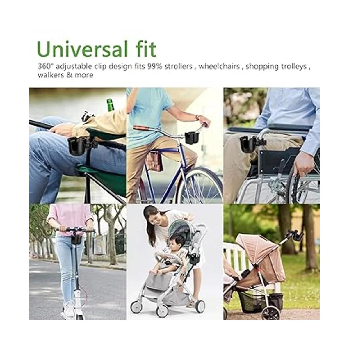 Suranew Portavasos para cochecito con soporte para teléfono/organizador de teléfono, soporte universal para bicicleta, portavasos 2 en 1 para caminar, bicicleta, silla de ruedas, andador