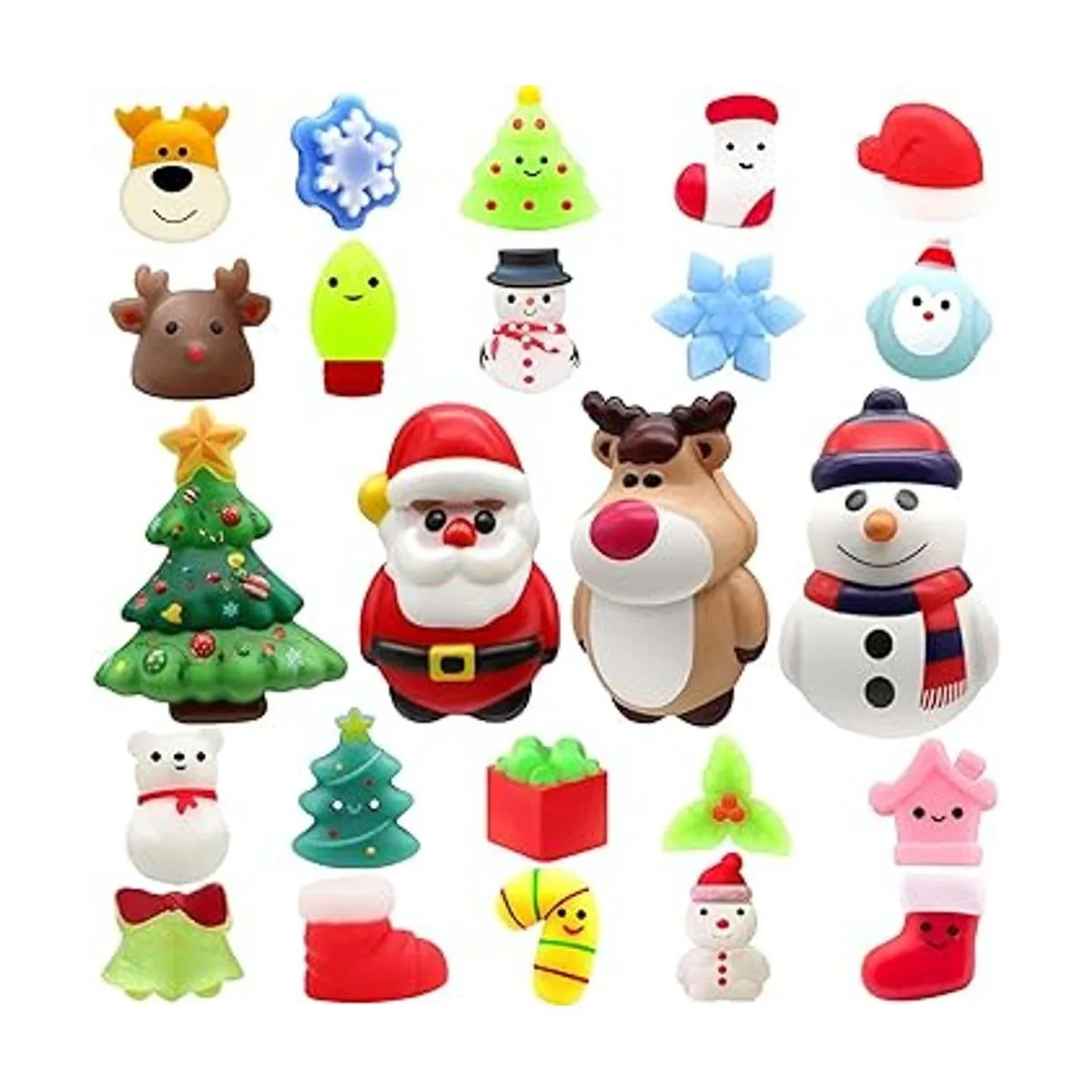 Calendario de Adviento de cuenta regresiva de Navidad: nuestro valioso juego de calendario de Adviento de Navidad incluye 20 juguetes mochi de Navidad y 4 grandes personajes de Navidad Jumbo.