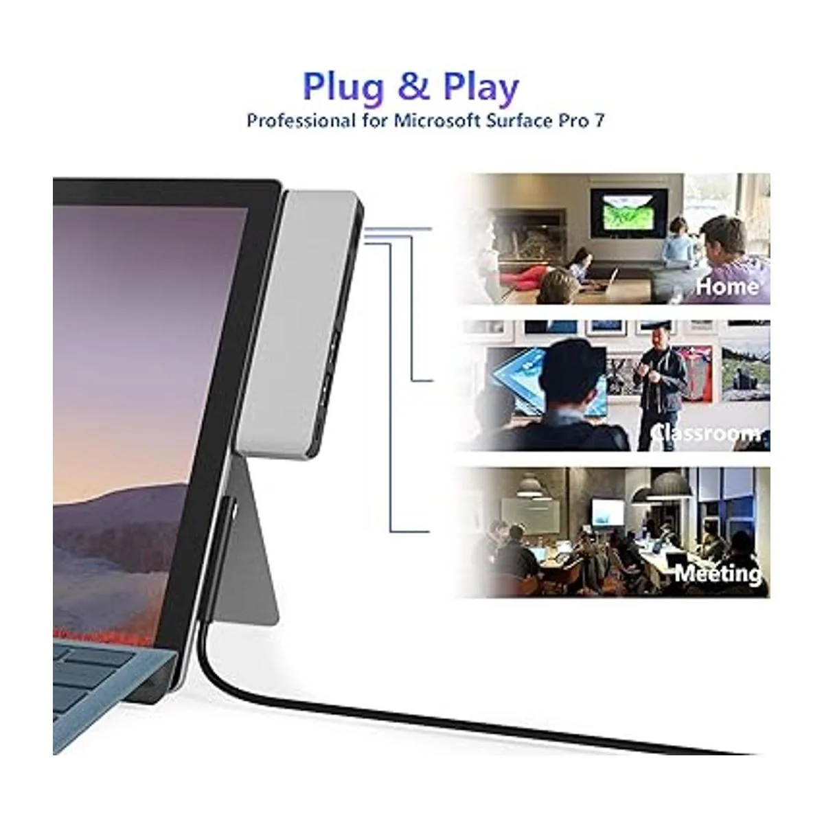 Combinación perfecta: el diseño especial de lado biselado y compacto de esta estación de acoplamiento combina perfectamente con tu Surface Pro 7. Simplemente conéctalo y juega, no necesita controlador. El peso ligero es conveniente para viajes o viajes de negocios. Compatible con sistema operativo Windows, MAC y Android. 24 meses después del servicio y no te preocupes por la devolución o reembolso.