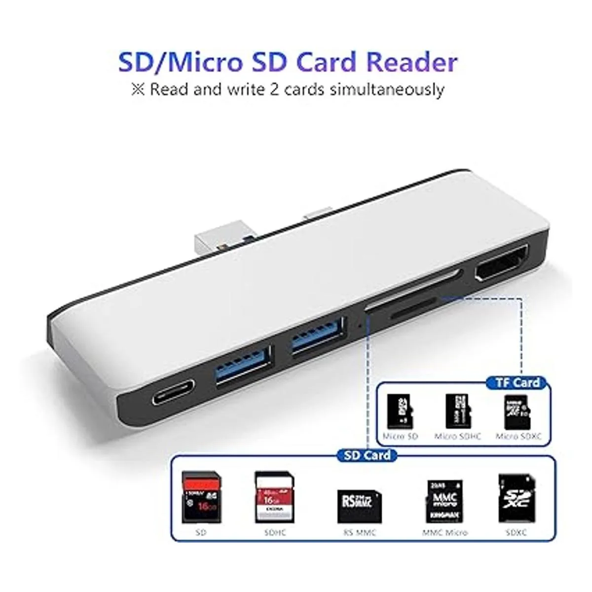 Surface Pro 7 USB C Hub, 6 en 2 Base Surface Pro 2019 de aluminio con adaptador 4K HDMI puerto USB C de transferencia de datos y audio 2 USB 3.0lector de tarjetas SDTF, adaptador combinado convertidor para Microsoft Surface Pro 7