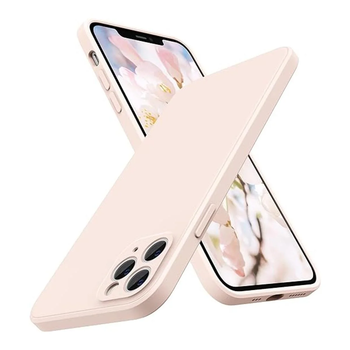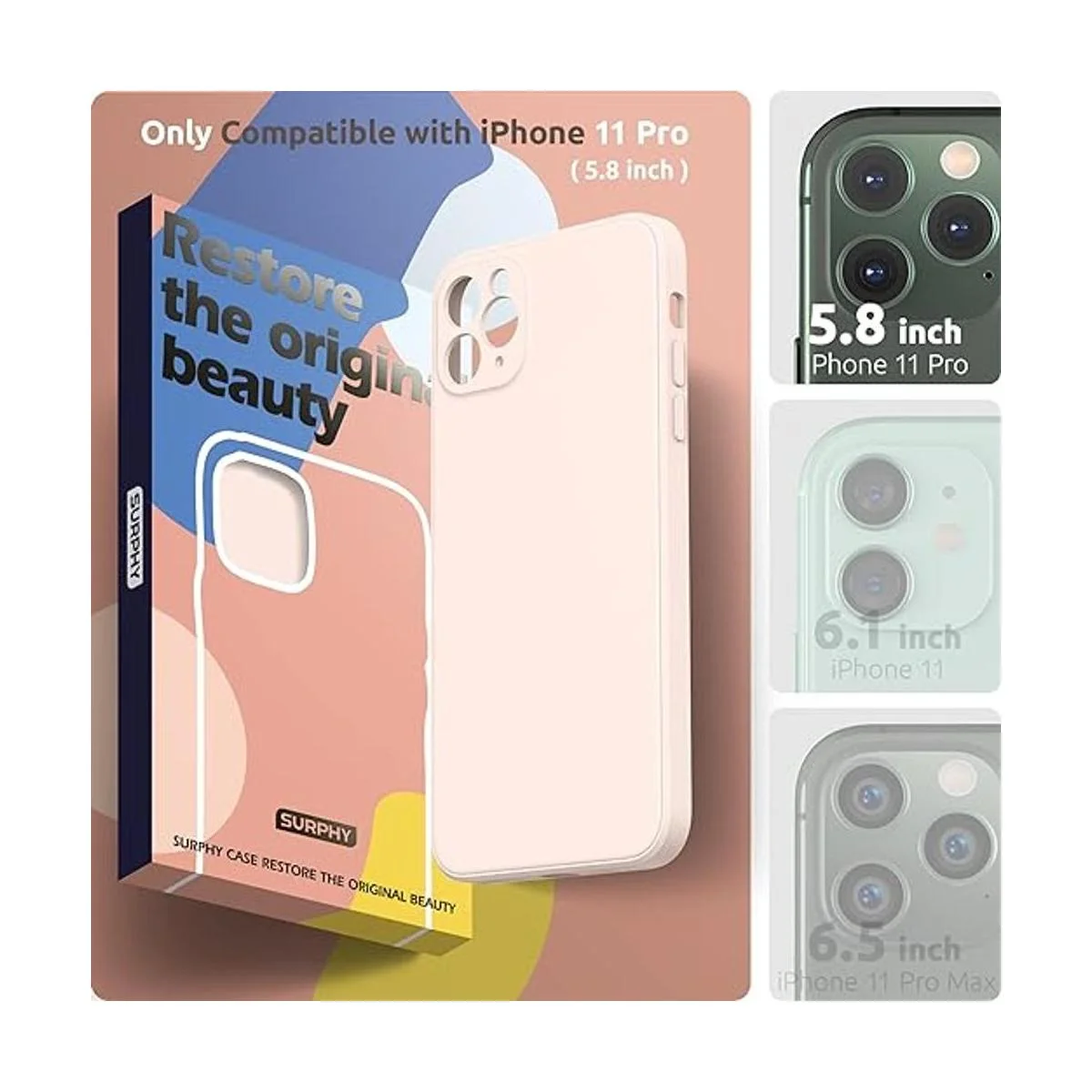 SURPHY Funda cuadrada de silicona compatible con iPhone 11 Pro de 5.8 pulgadas, bordes cuadrados de silicona líquida protección individual para cada lente para iPhone 11 Pro rosa claro