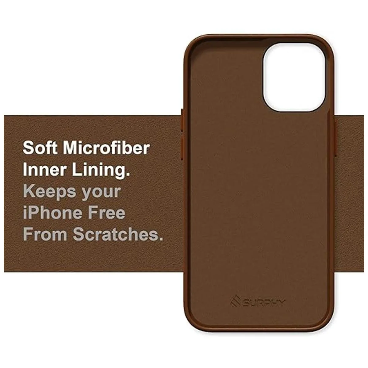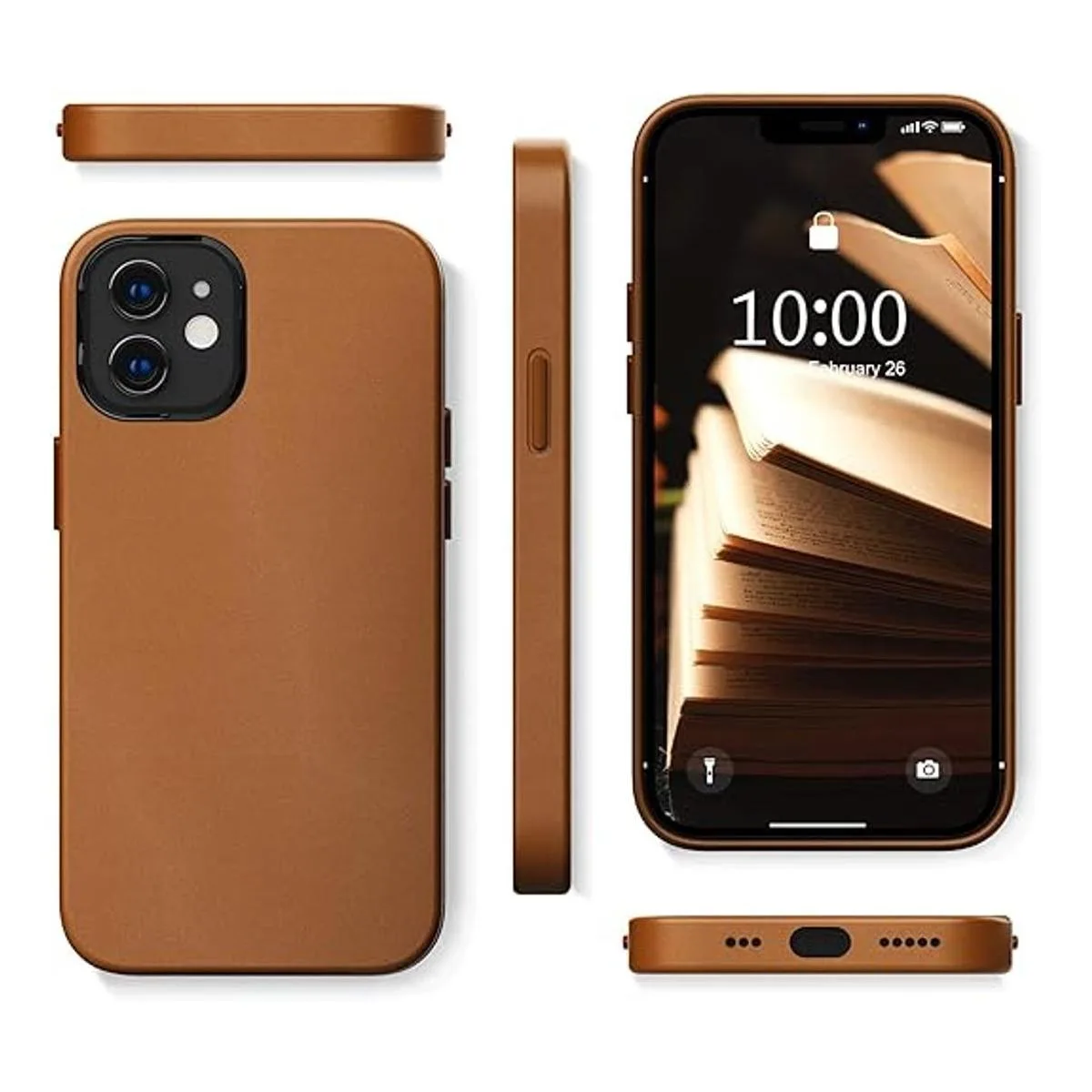 SURPHY Funda de piel sintética para iPhone 12 y iPhone 12 Pro de 6.1 pulgadas 2020, funda de piel sintética con forro de microfibra diseñada para iPhone 12 y 12 Pro marrón