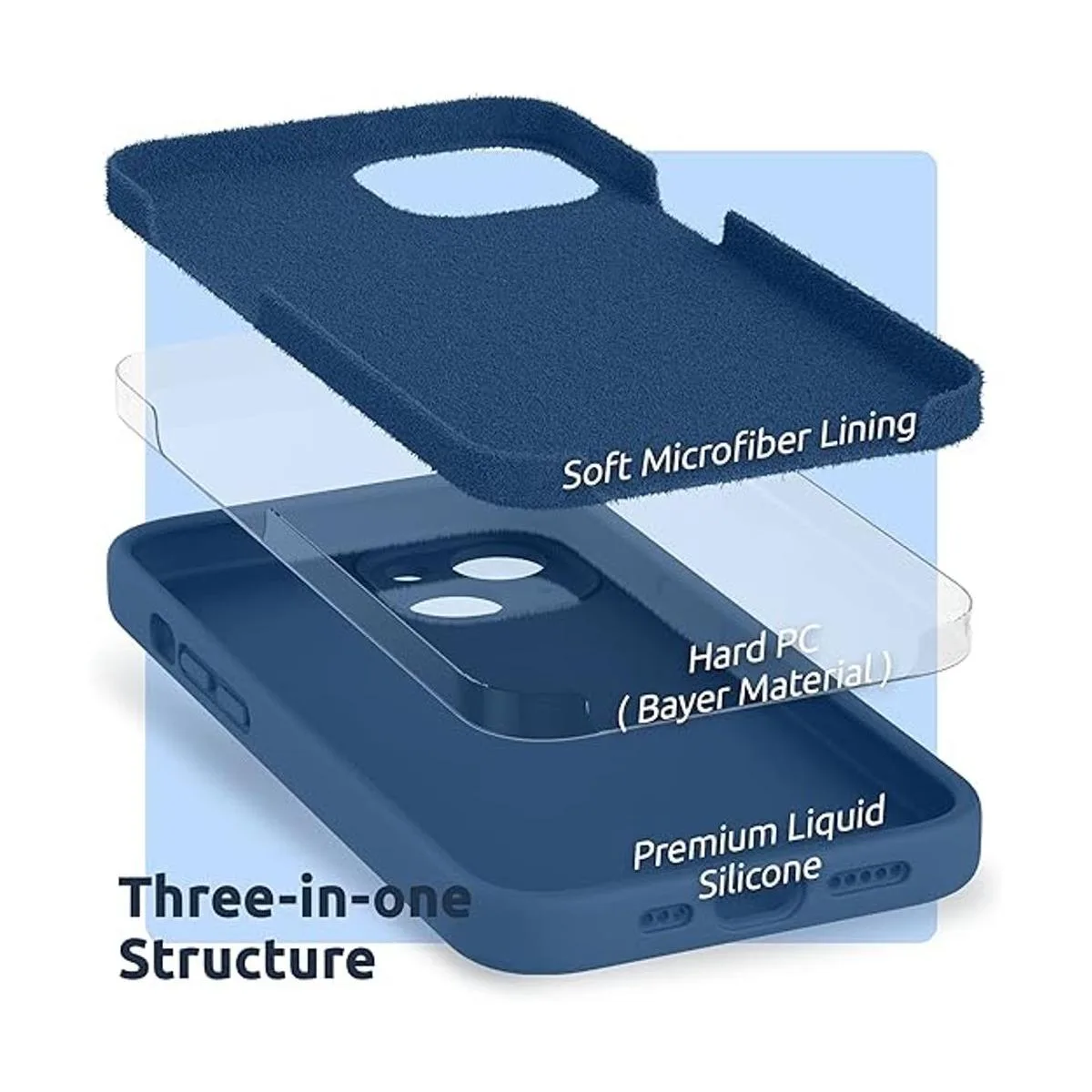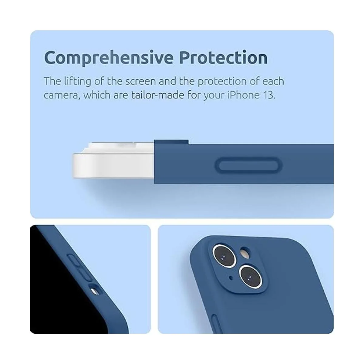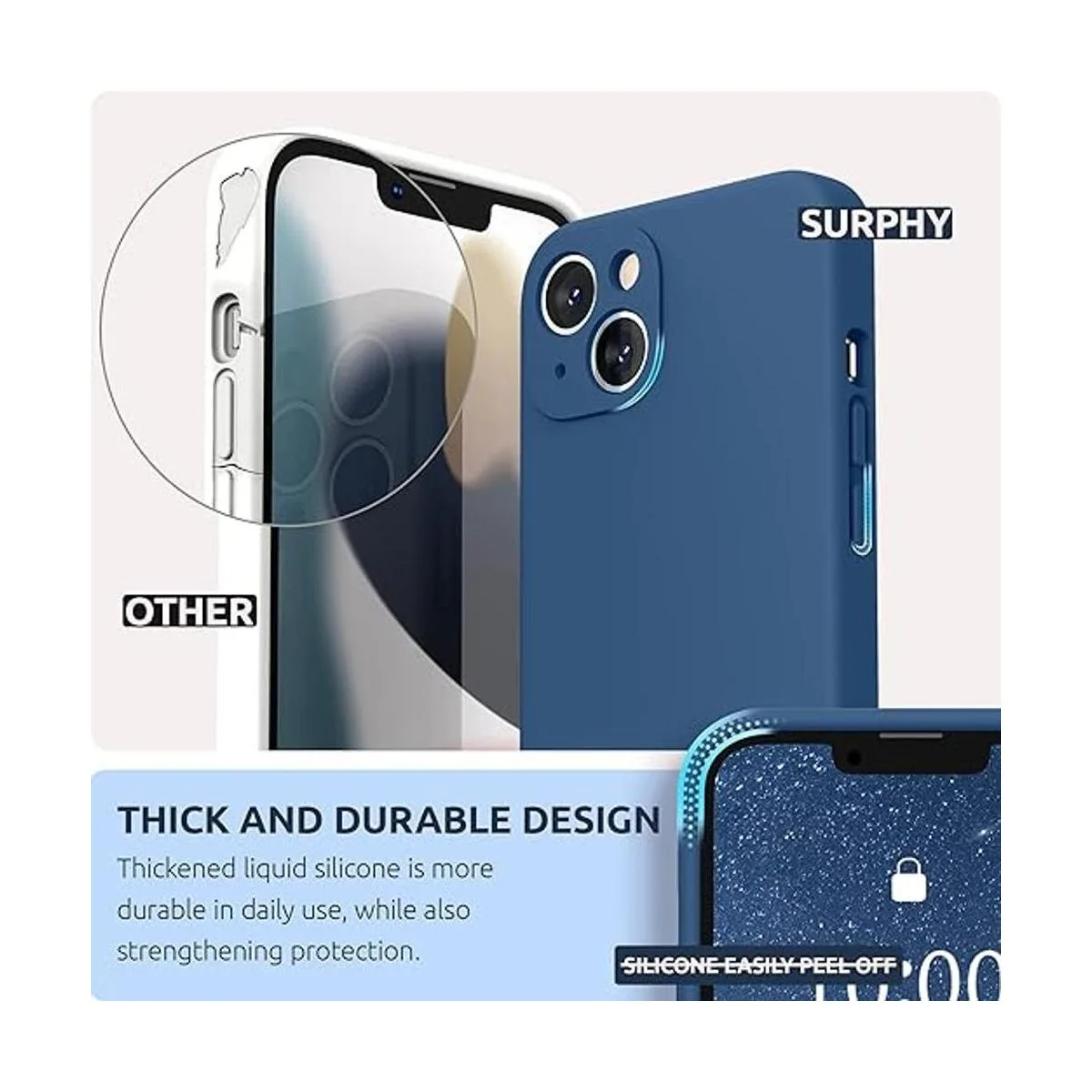 SURPHY Funda de silicona compatible con iPhone 13 6.1 pulgadas 2021, con protección de cámara, funda de silicona líquida con forro de microfibra azul jay