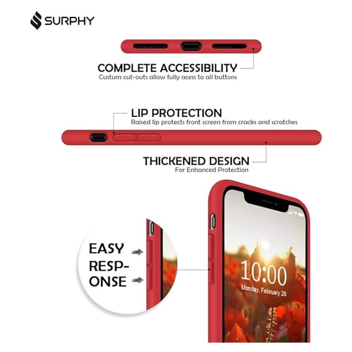 Funda de silicona duradera: las esquinas inferiores de la funda se cambian a esquinas suaves, hace que las esquinas sean más flexibles. Estas esquinas suaves pueden reducir el desgarro causado por poner o quitar la funda del teléfono, lo que es más duradero. SURPHY proporciona un año de garantía