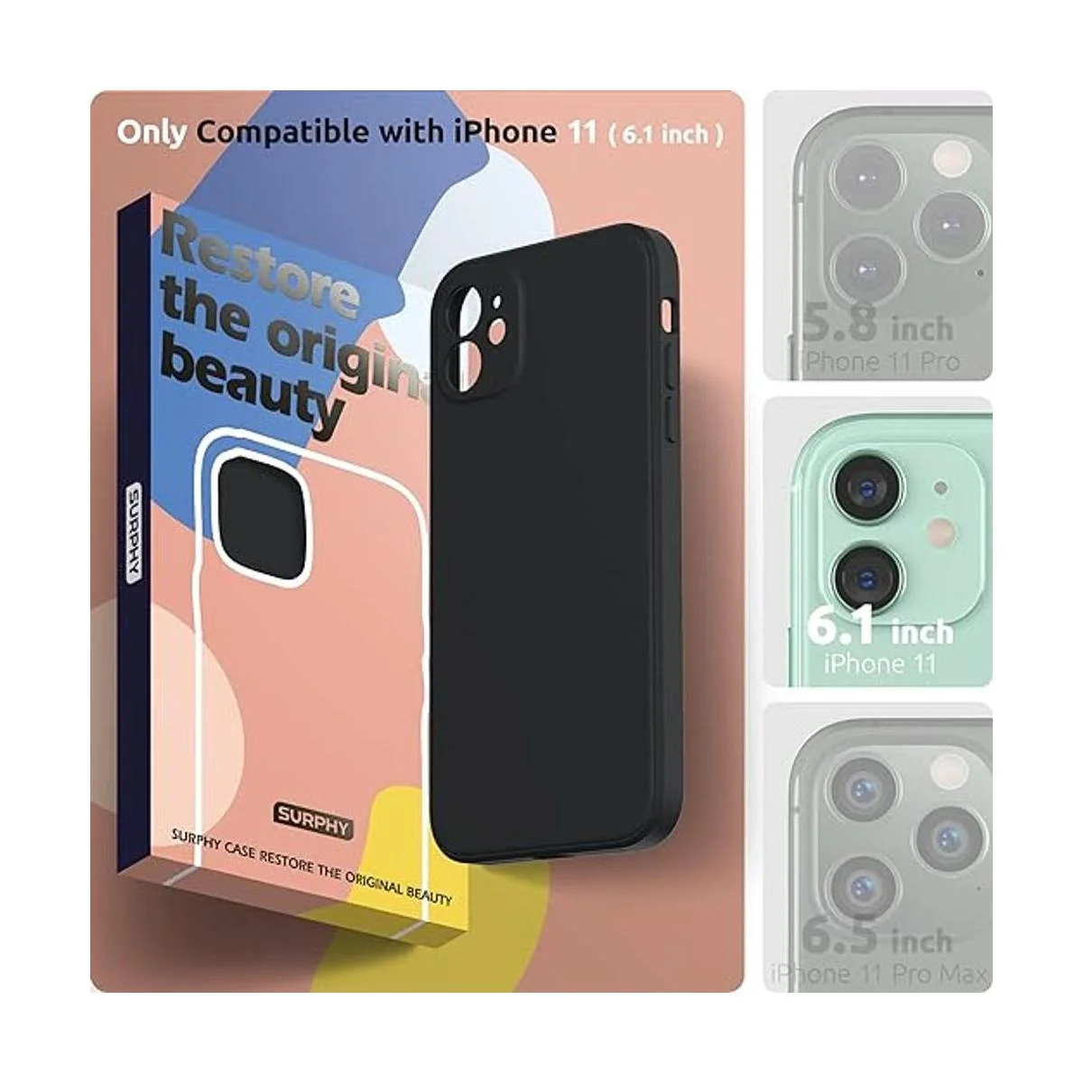 SURPHY Funda de silicona cuadrada compatible con iPhone 11 6.1 pulgadas, bordes cuadrados de silicona líquida protección individual para cada lente para iPhone 11 negro