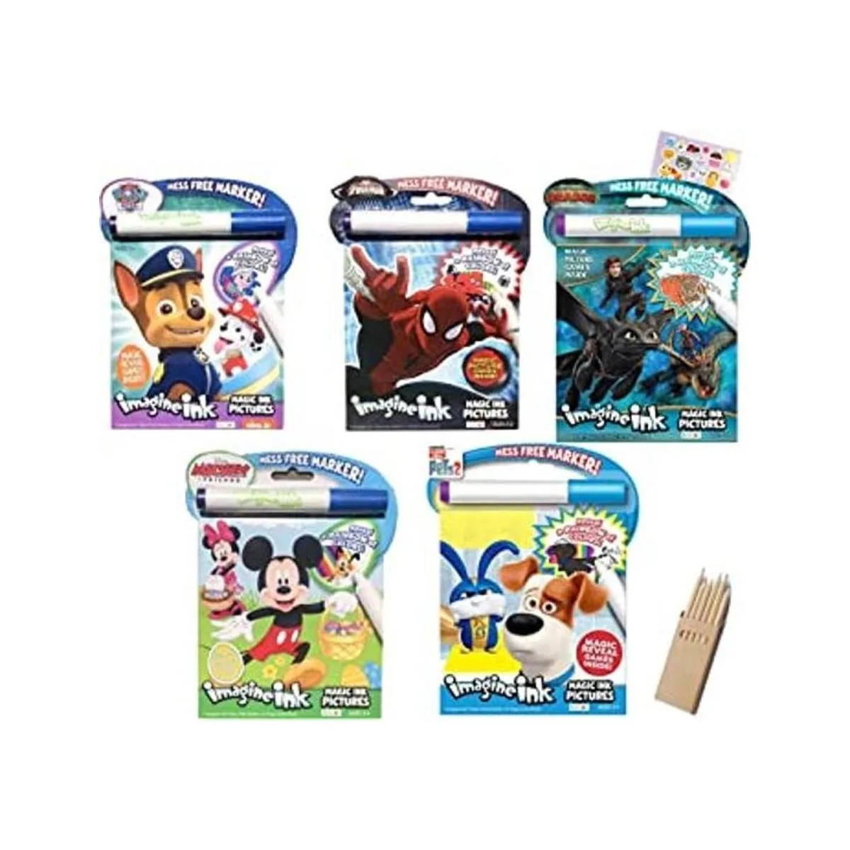 Surtido de 5 libros de tinta para colorear con personajes de dibujos animados favoritos sin líos de tinta invisible.