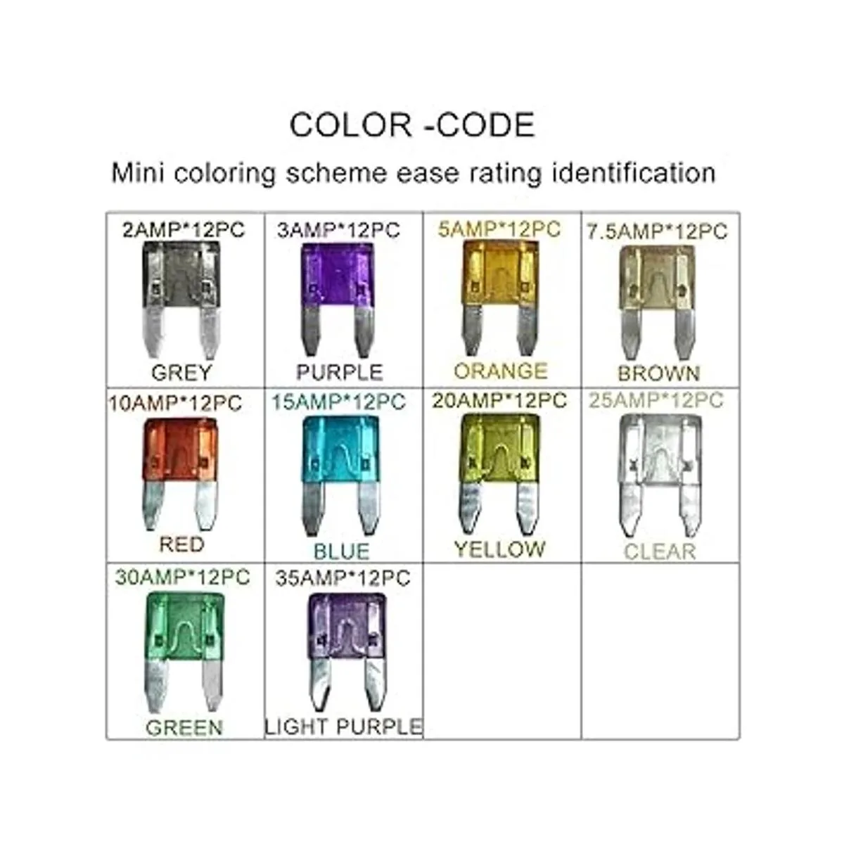 El paquete incluye: la caja surtida de fusibles MuHize contiene 120 fusibles de hoja comúnmente utilizados y una abrazadera de fusible. Mini 120 piezas APM, ATM: 2A/3A/5A/7.5A/10A/15A/20A/25A/30A/35A 12 piezas de cada uno.