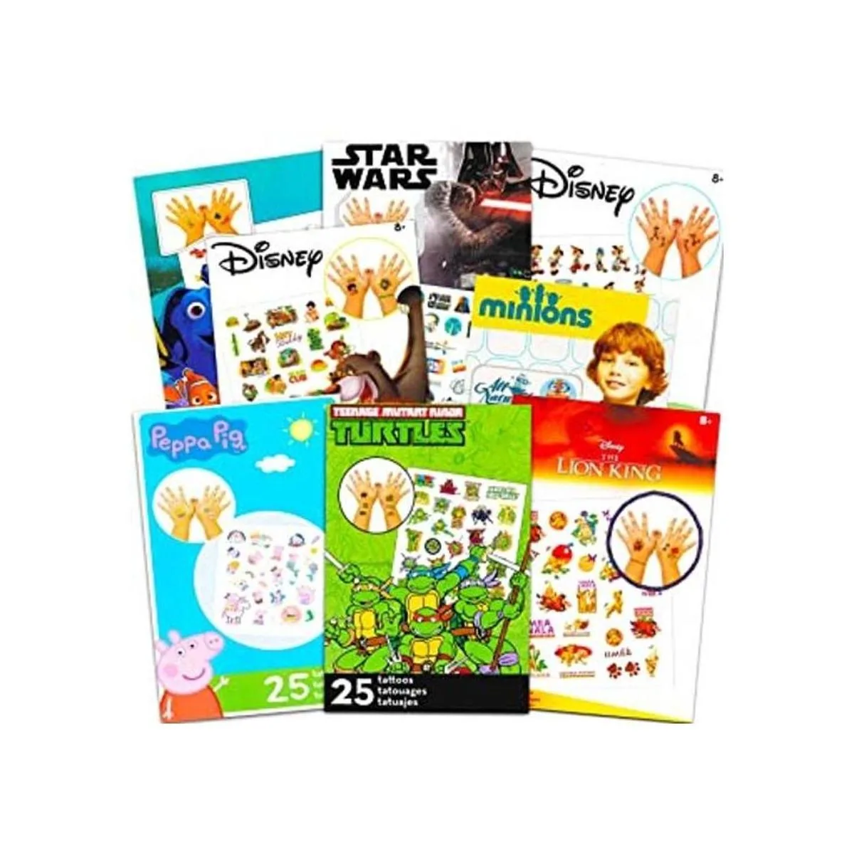 Surtido de tatuajes temporales para niños El paquete incluye 200 tatuajes surtidos para niños con Dory, Star Wars, Minions, TMNT, Peppa Pig y más paquete de fiesta a granel, sin duplicados