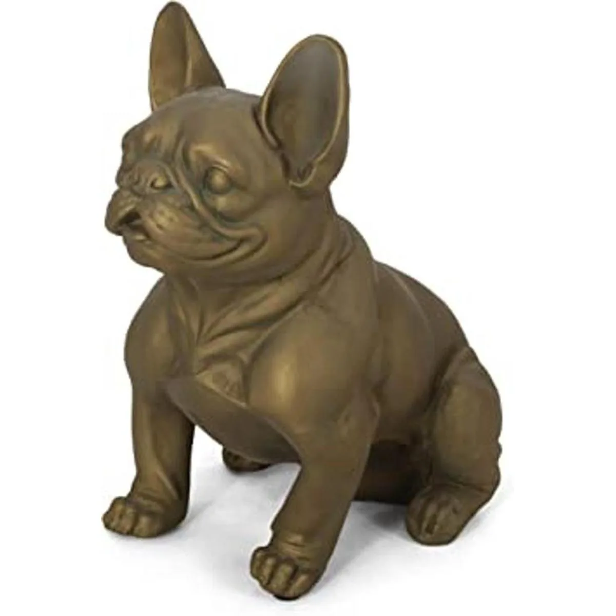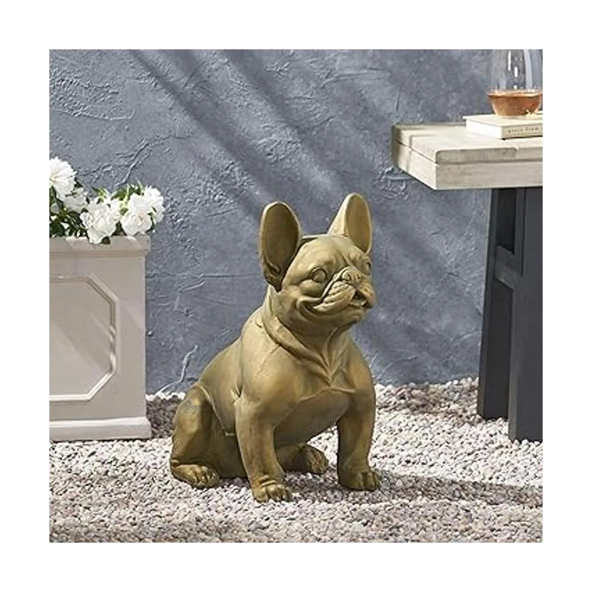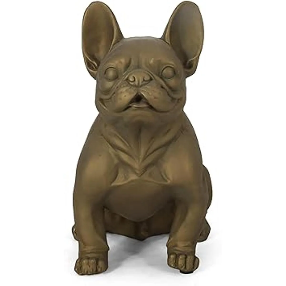 Susan Estatua de jardín de bulldog francés, rústico dorado
