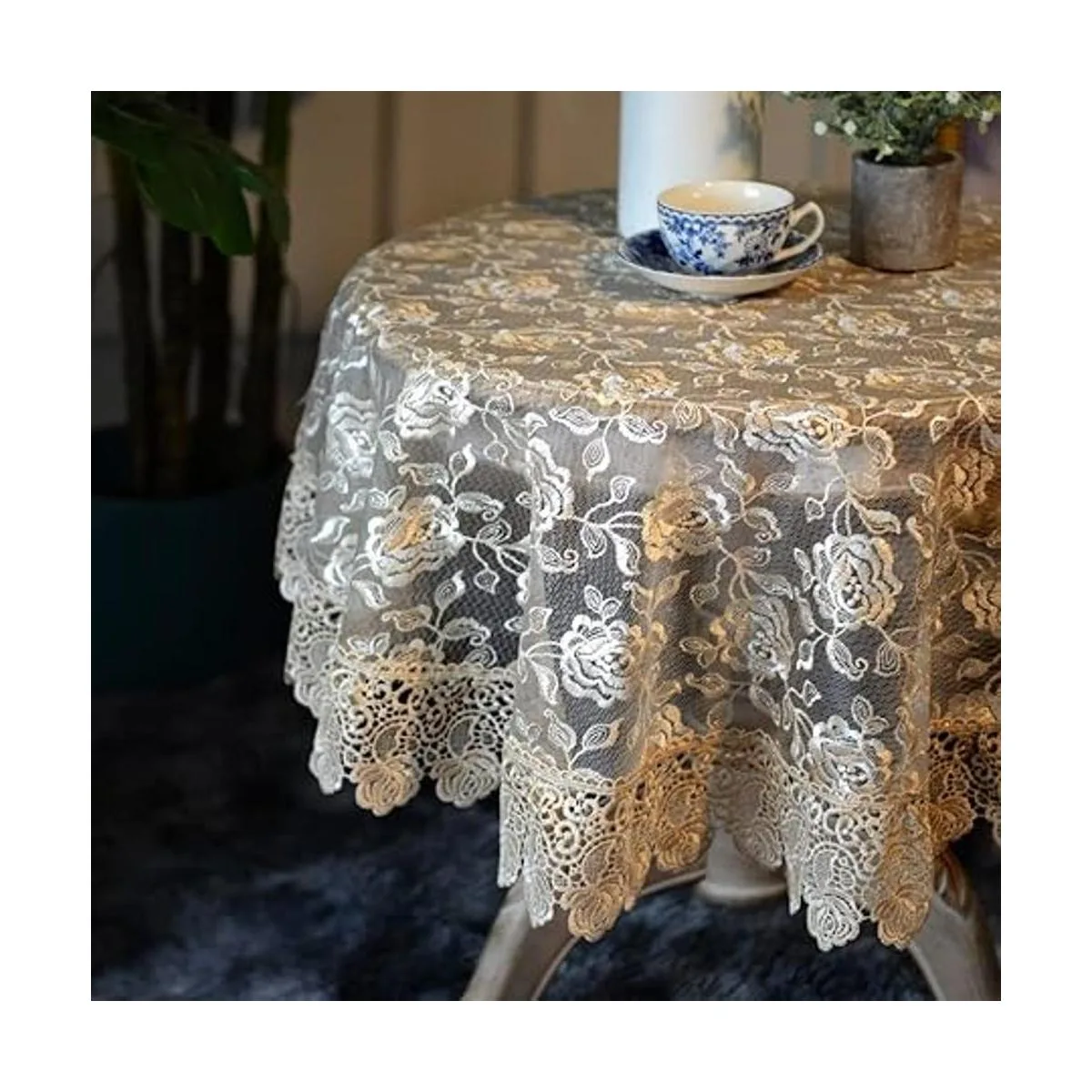 SUTAVIA Mantel redondo de tela de encaje con diseño floral de oro rosa, protector de mesa clásico a prueba de polvo para mesa de comedor, picnic, boda, fiesta, banquete, decoración del hogar dorado, 33 pulgadas redondo