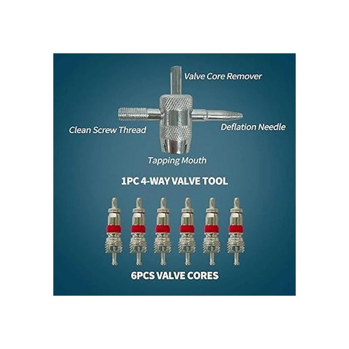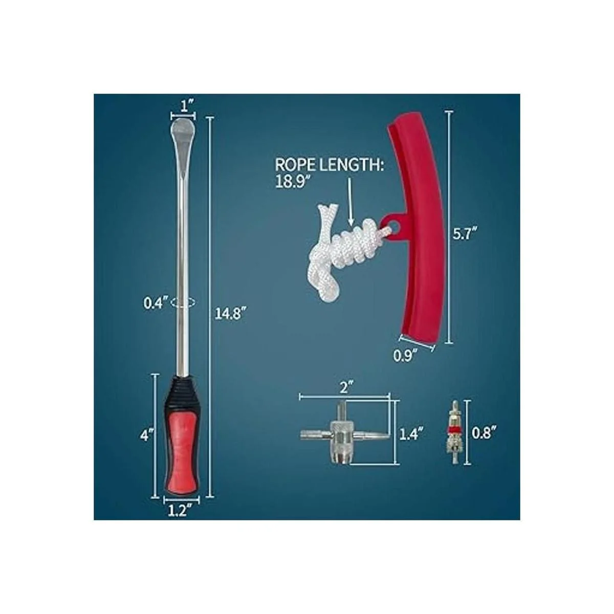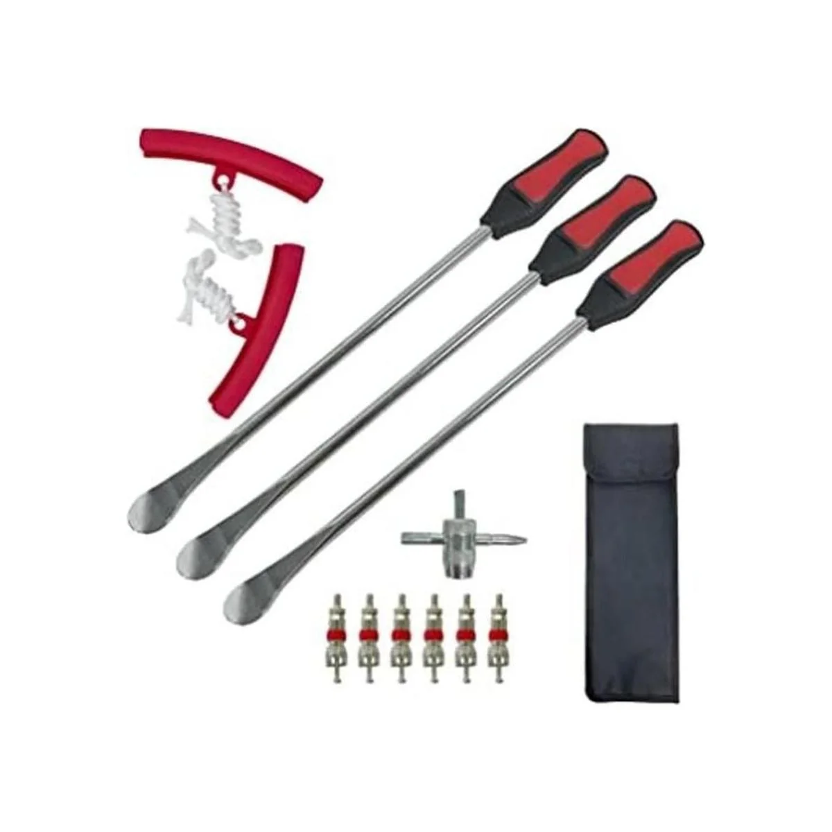 Sutekus El kit de herramientas de cucharas de neumáticos incluye 3 cucharas de neumáticos de 14.5 pulgadas, 2 protectores de llantas, 6 núcleos de válvula de neumático, 1 herramienta de válvula de 4 vías.