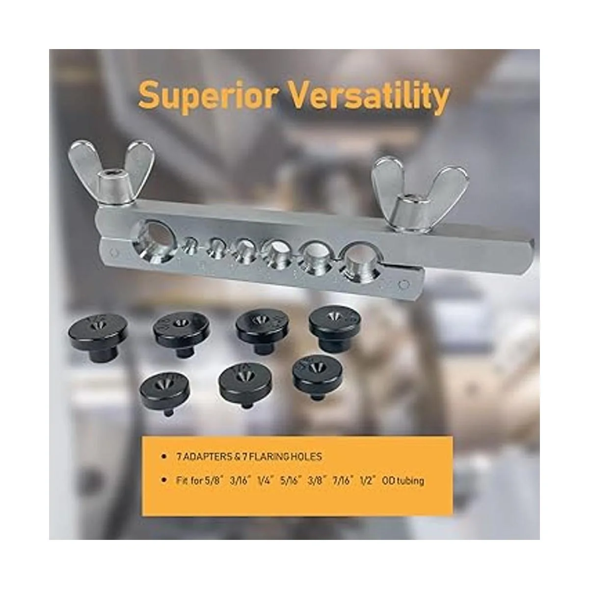 Tamaño de los adaptadores de abocardado: 3/16, 1/4, 5/16, 3/8, 7/16, 1/2, 5/8