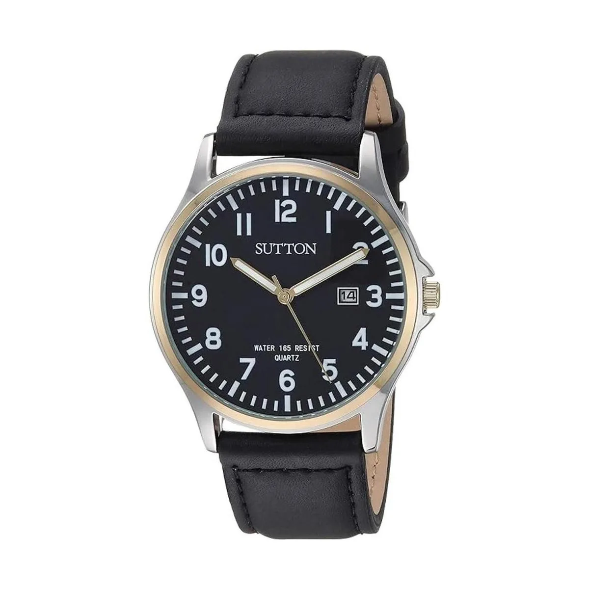 Sutton by Armitron SU5015BKTT Reloj de pulsera para hombre con función de fecha, dos tonos y correa de piel negra