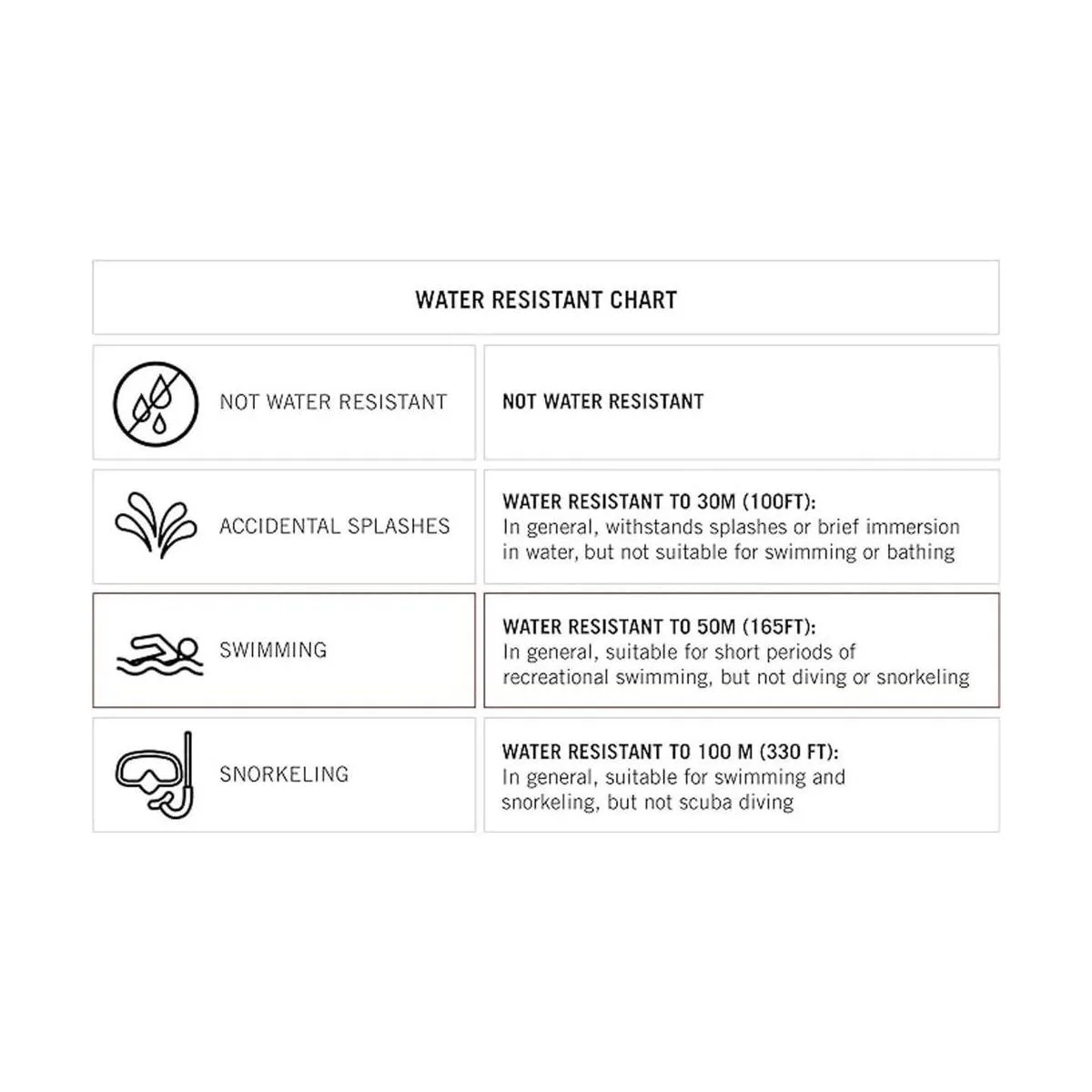 Resistente al agua hasta 164.0 ft: en general, apto para períodos cortos de natación recreativa, pero no para buceo o esnórquel.