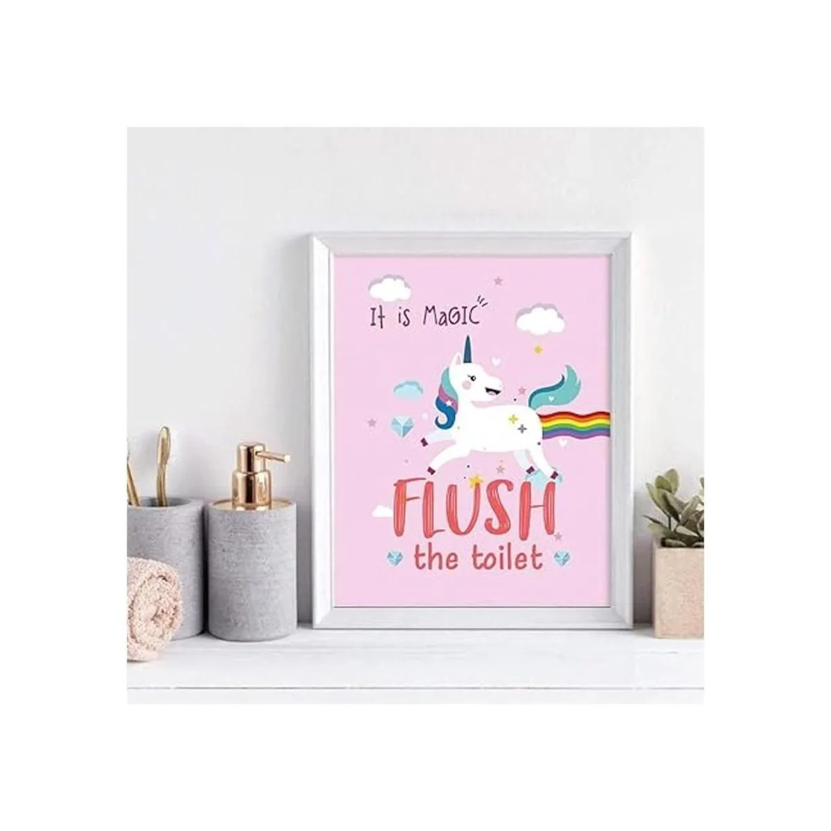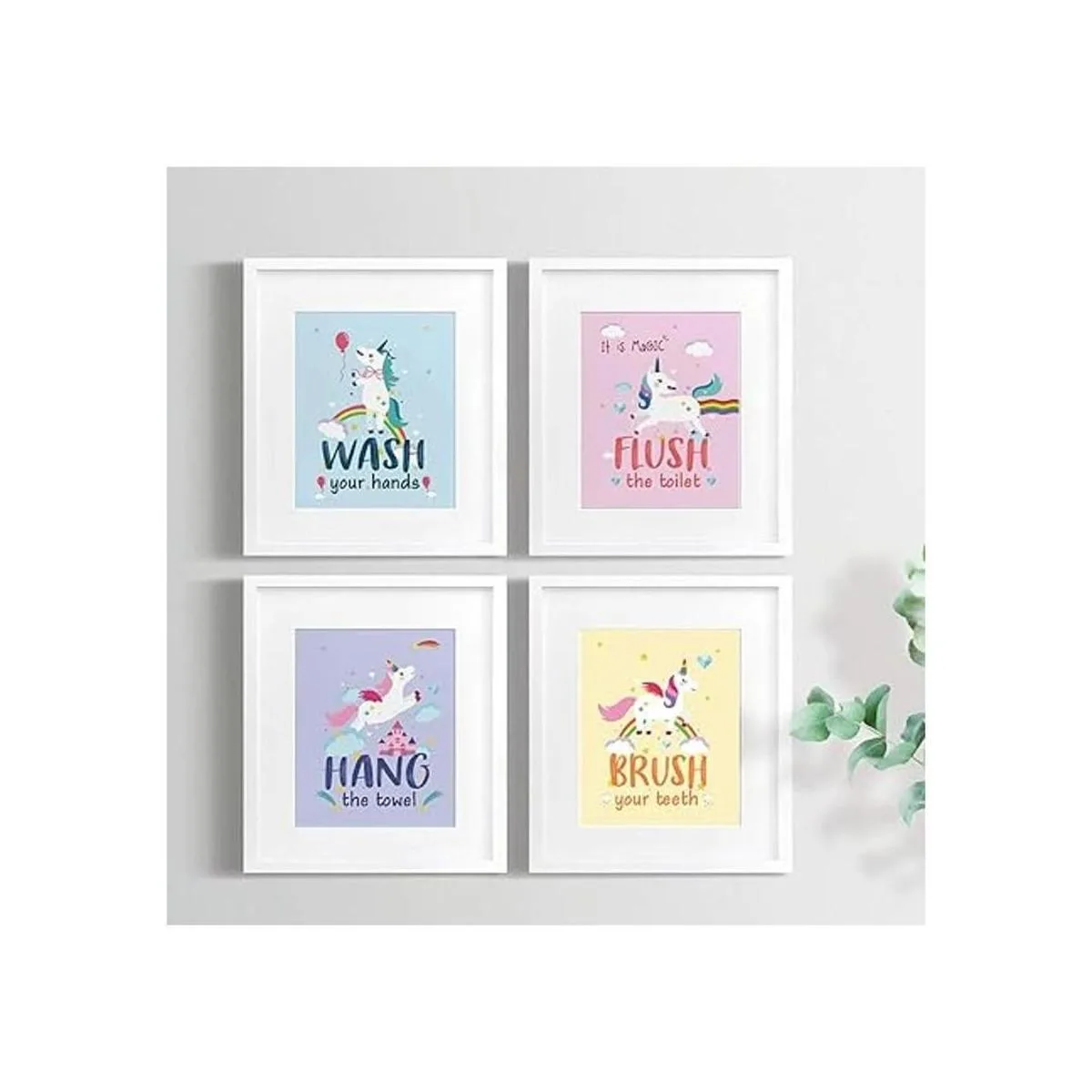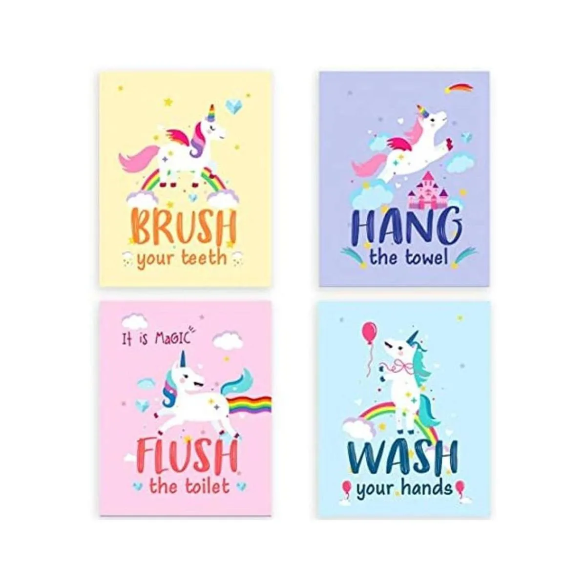 SUUURAOO Juego de 4 estampados de unicornio colorido para cuarto de baño, diseño de acuarela 8 x 10 pulgadas, póster artístico de unicornio para guardería, baño de niñas y niños, decoración de pared del hogar, sin marco