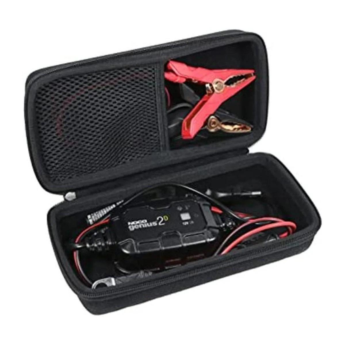 SUW Funda protectora de viaje portátil compatible con NOCO Genius 5Genius 2Genius 1 cargador inteligente totalmente automático, funda rígida con bolsillo de malla para cargadores de batería NOCO de 5 amperios2 amperios1 amperios