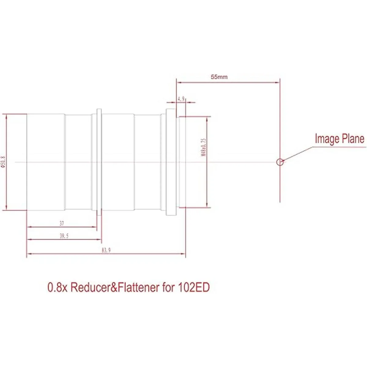 Reductor focal de 0,8 x y aplanador de campo; para telescopios refractores; satisface las necesidades de iluminación de disparo de marco completo