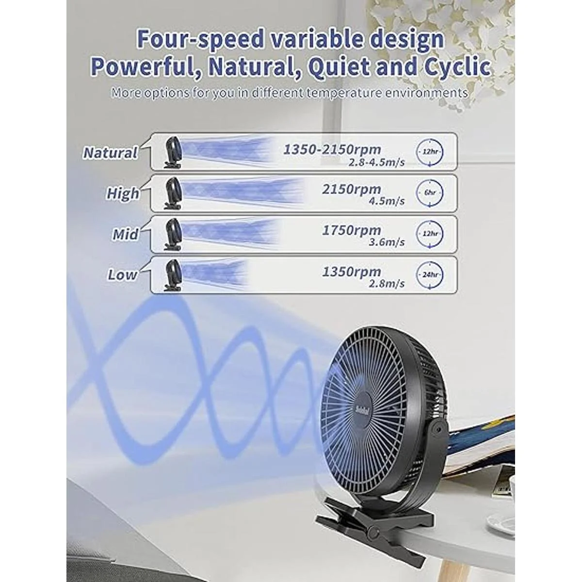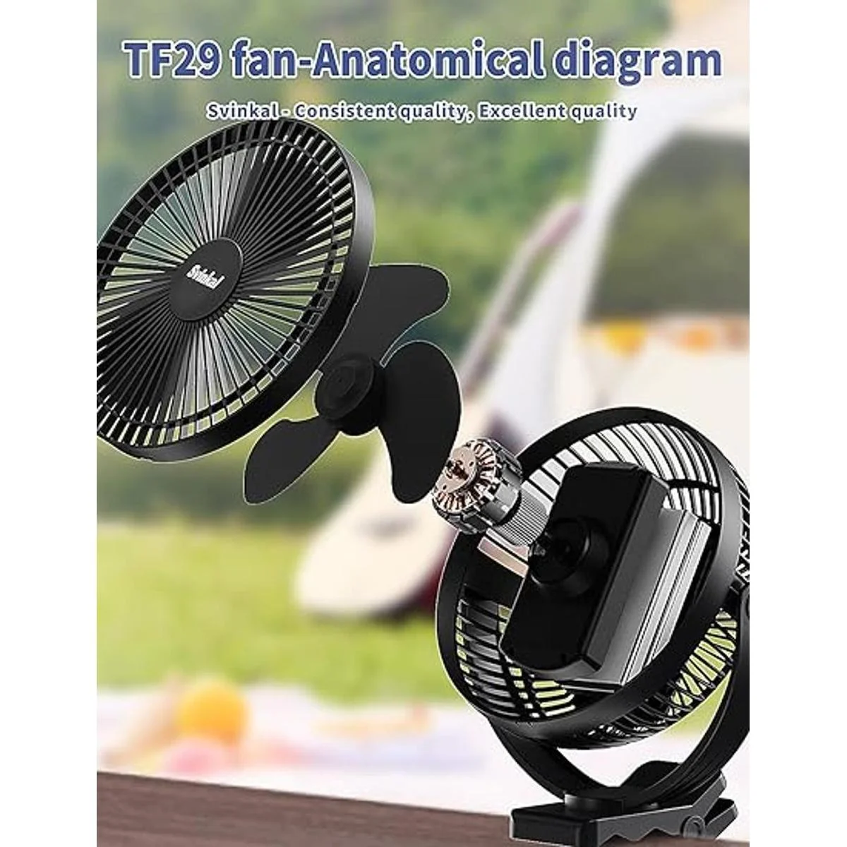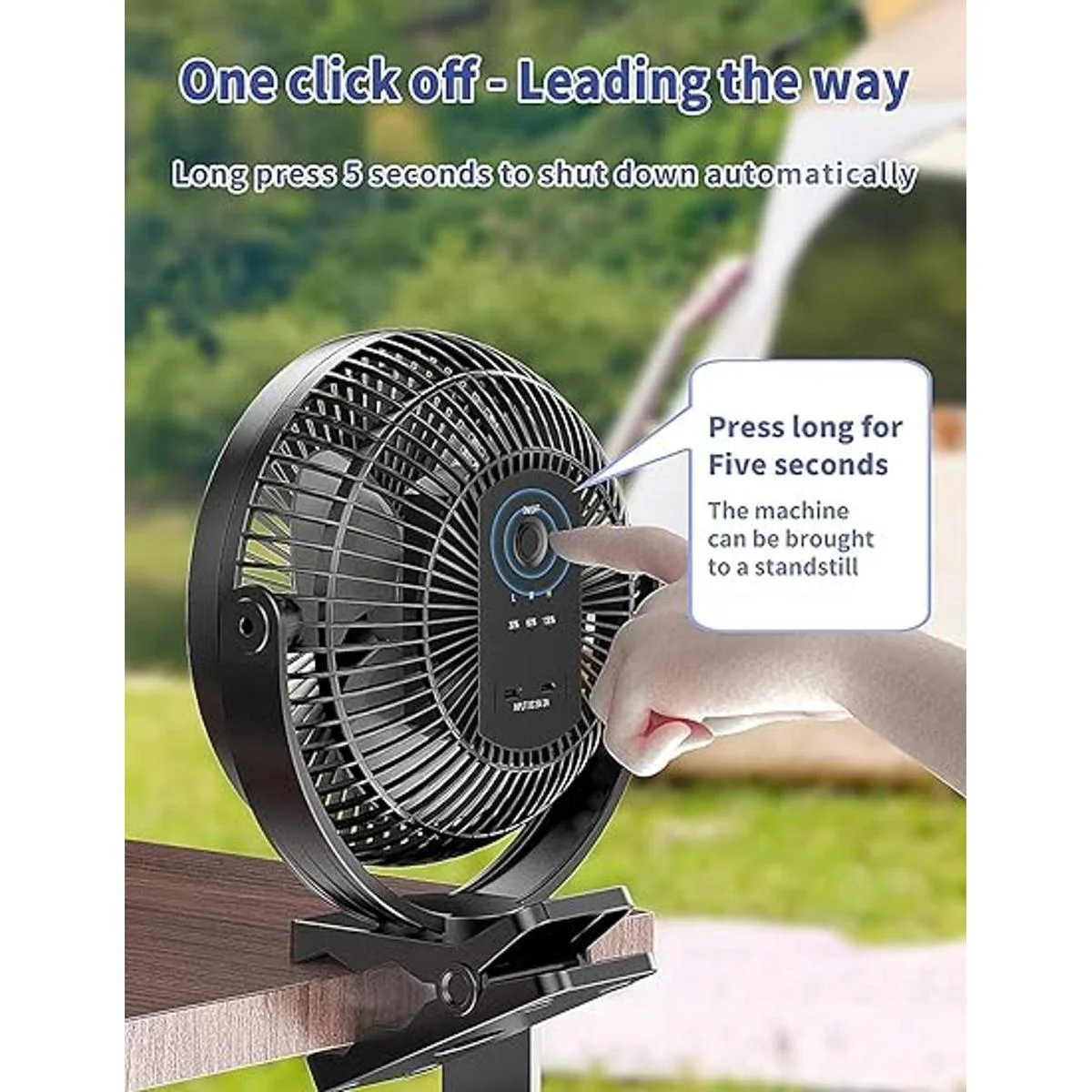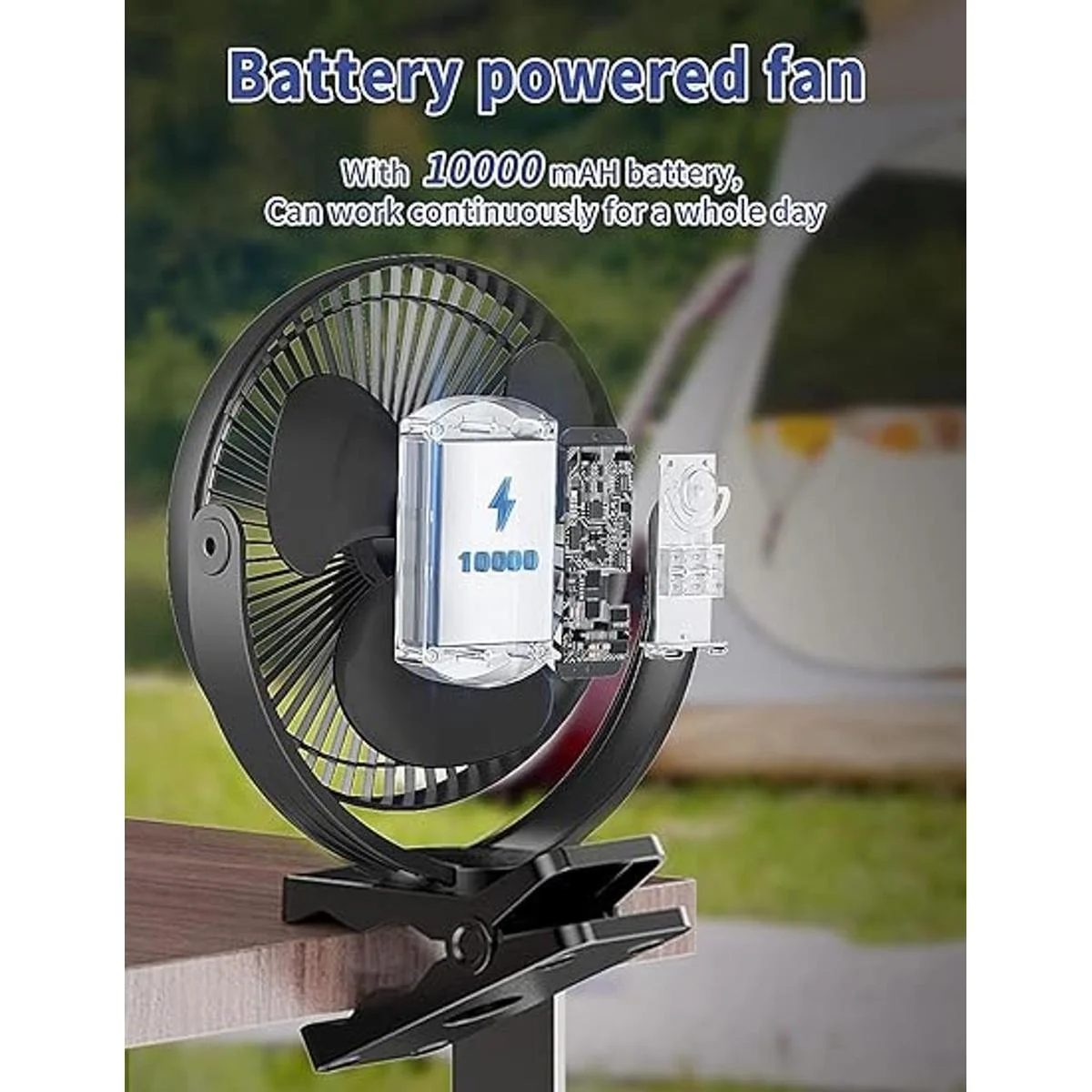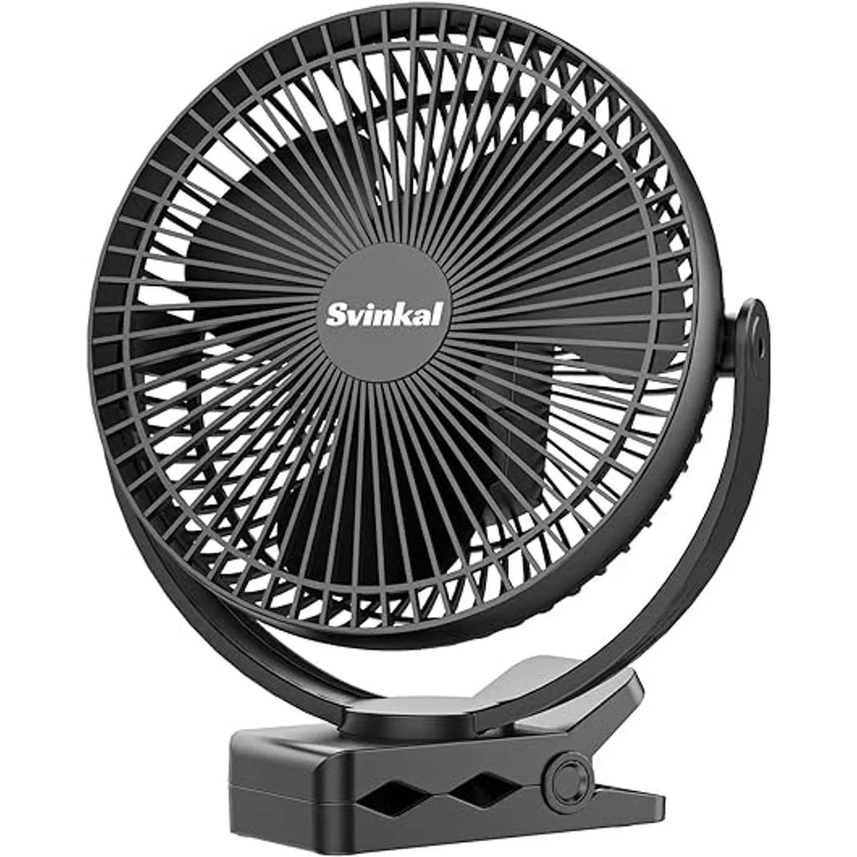 Svinkal Ventilador portátil USB con clip, ventilador recargable de 10000 mAh, 24 horas de tiempo de trabajo, ventilador de escritorio de 4 velocidades de 8 pulgadas, ideal para acampar al aire libre, carrito de golf, oficina en casa.