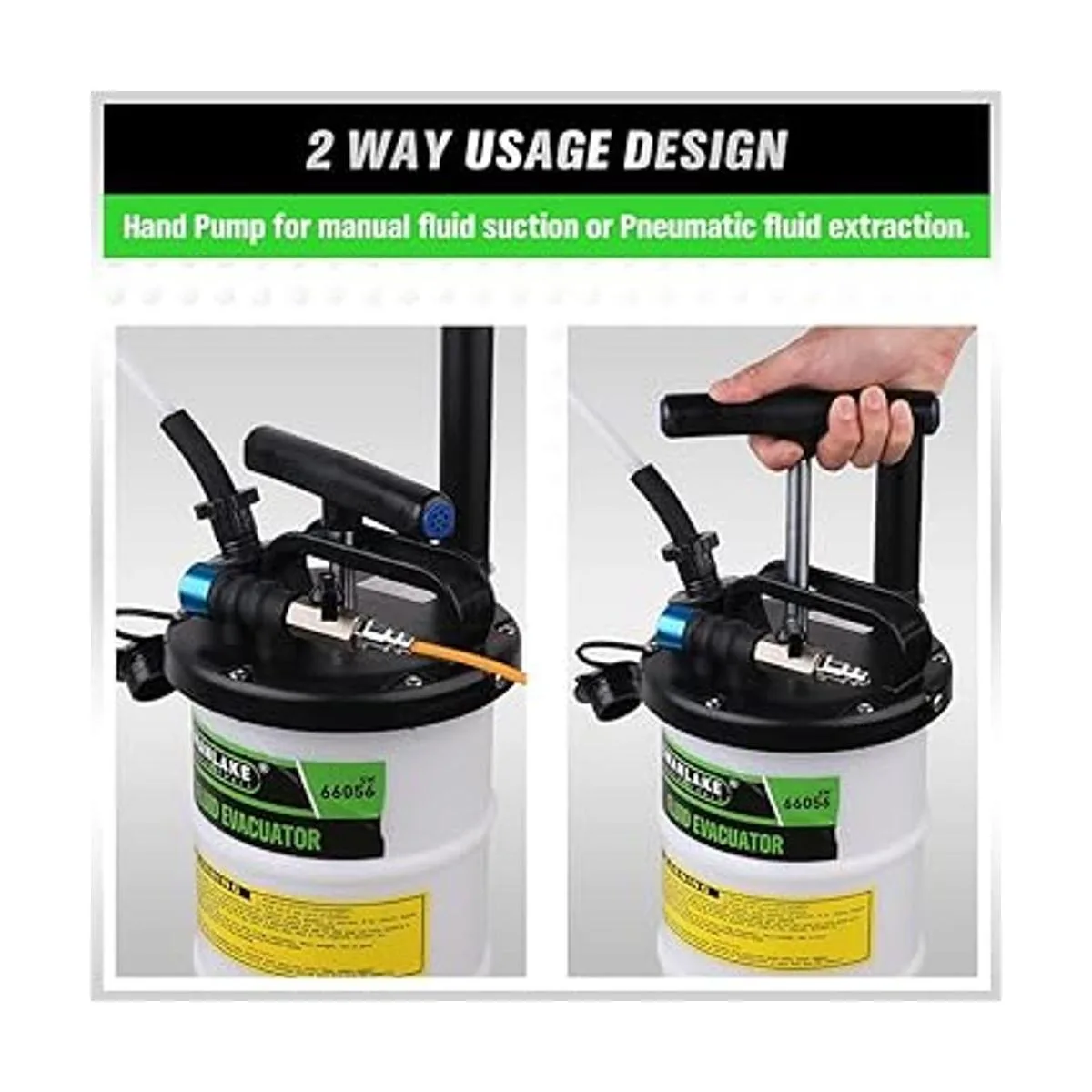 Pneumatic mode and manual mode to fit all situation. The manual mode could be used by itself without any other equipments.The pneumatic mode turns the pump into a highspeed oil changer as long connect with air compressor.
