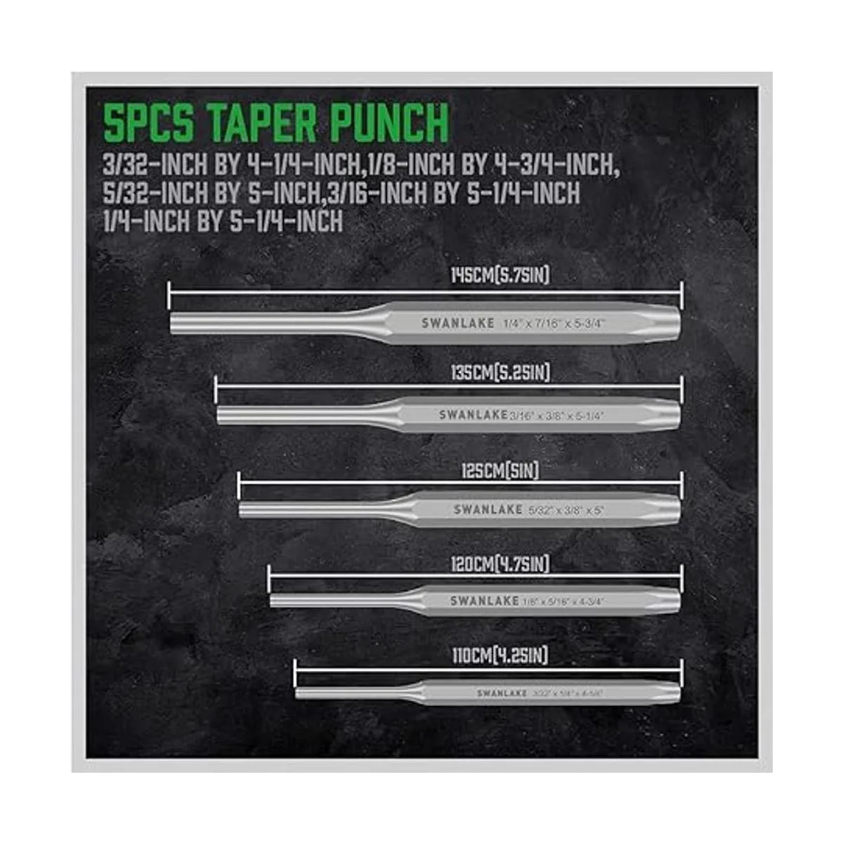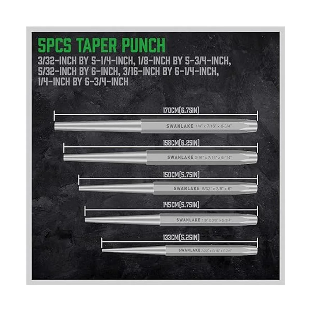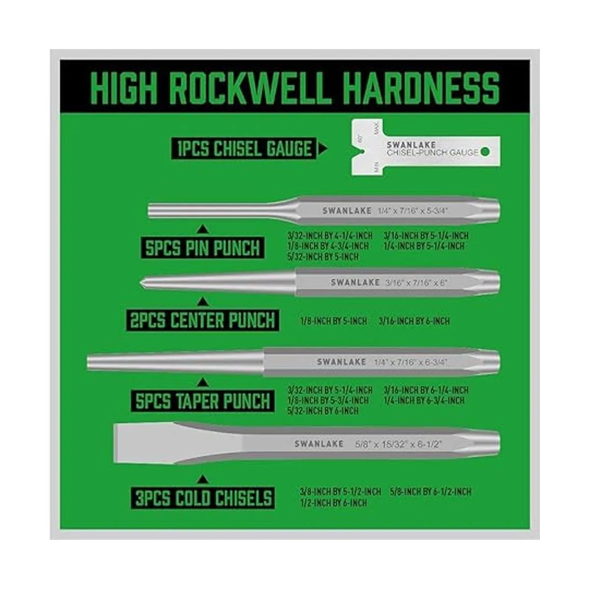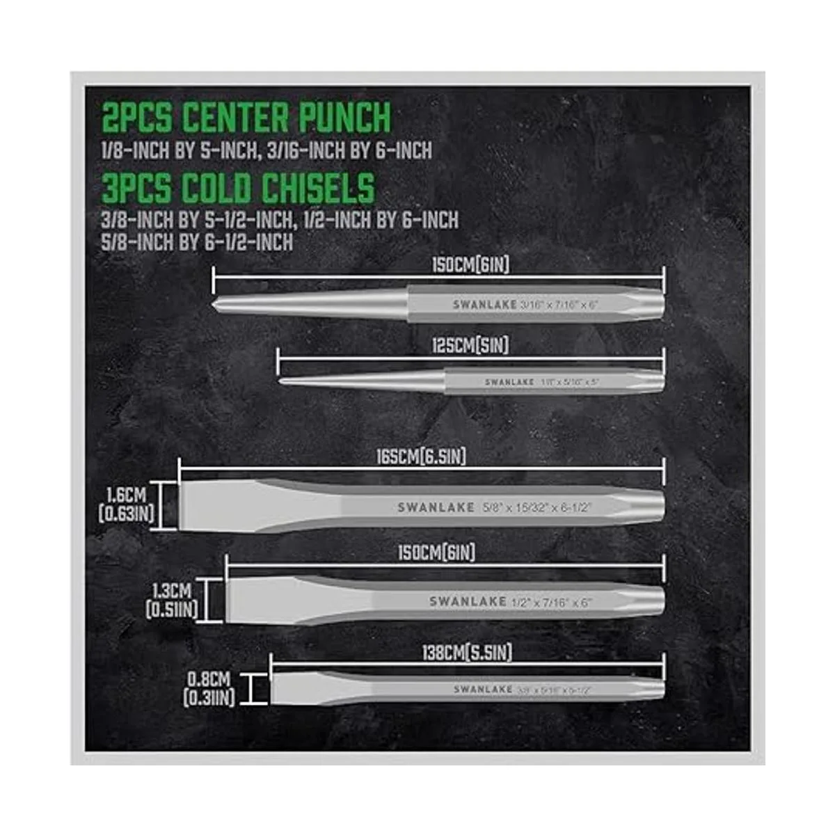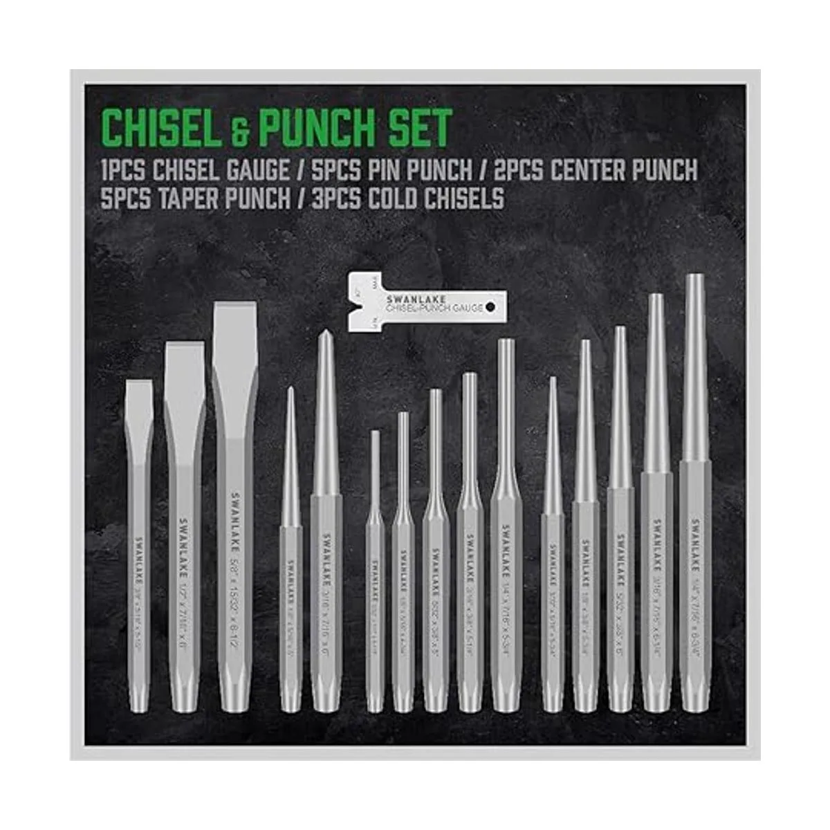 SWANLAKE Juego de 16 piezas de punzón y cincel, incluye punzón cónico, cinceles fríos, punzón de pasador, punzón central