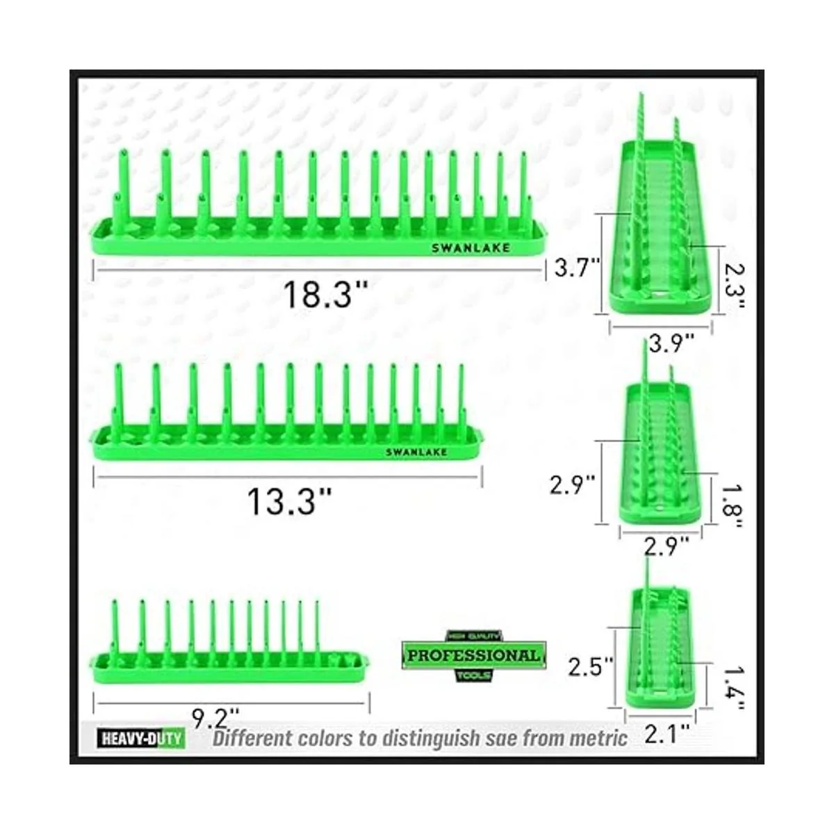 SWANLAKE Socket Organizer Set,6PCS SAE and Metric Socket Tray Set,14, 38, and 12 Drive Socket Holders Organizers for Toolbox