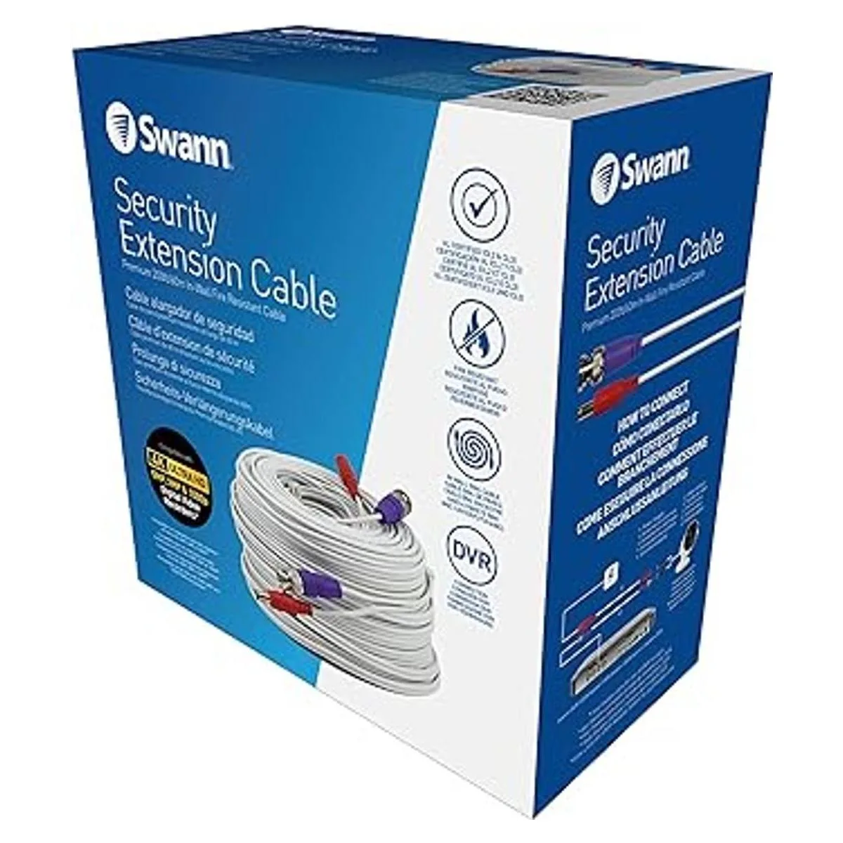 Swann Cable coaxial BNC para sistema de cámara de seguridad, cables de alimentación de extensión de audio y video, certificado UL y resistente al fuego, 100 pies 100 pies98.4 ft SWPRO30ULCBL