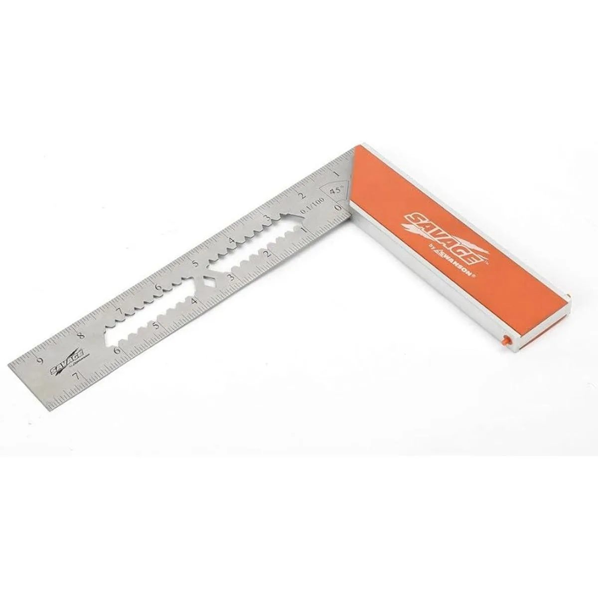 La regla de acero inoxidable cuenta con gradaciones negras grabadas con precisión, y mide 10.0 in en el exterior, 8.5 in en el interior y mide aproximadamente 1.7 in de ancho