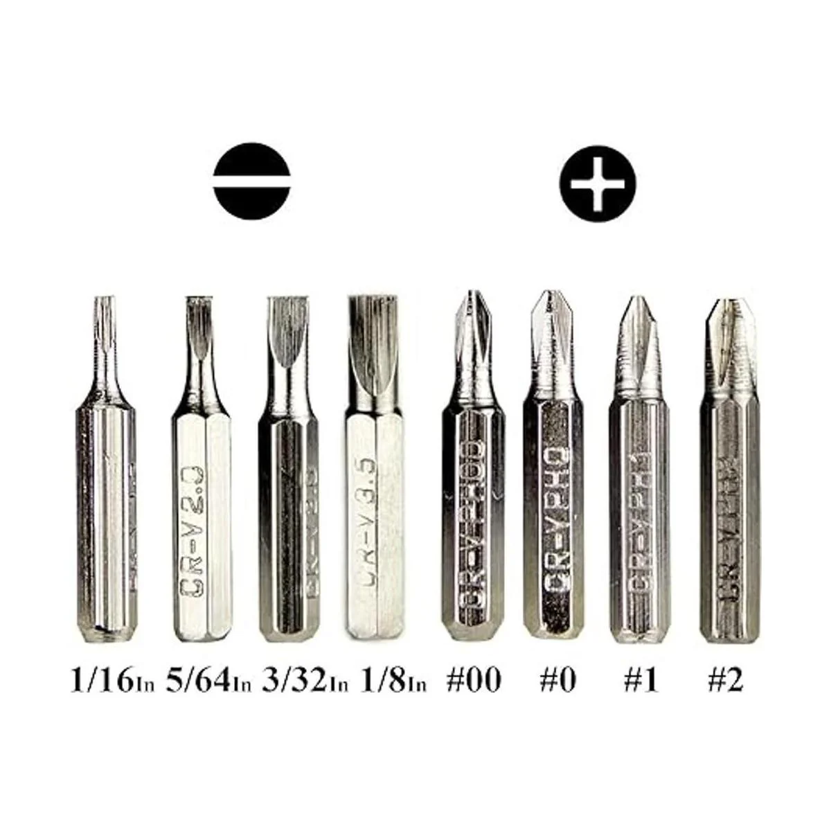 8 kits de cabeza de destornillador con magnetismo: 1/16 pulgadas, 5/64 pulgadas, 3/32 pulgadas, 1/18 pulgadas, 00, 0, 1, 2