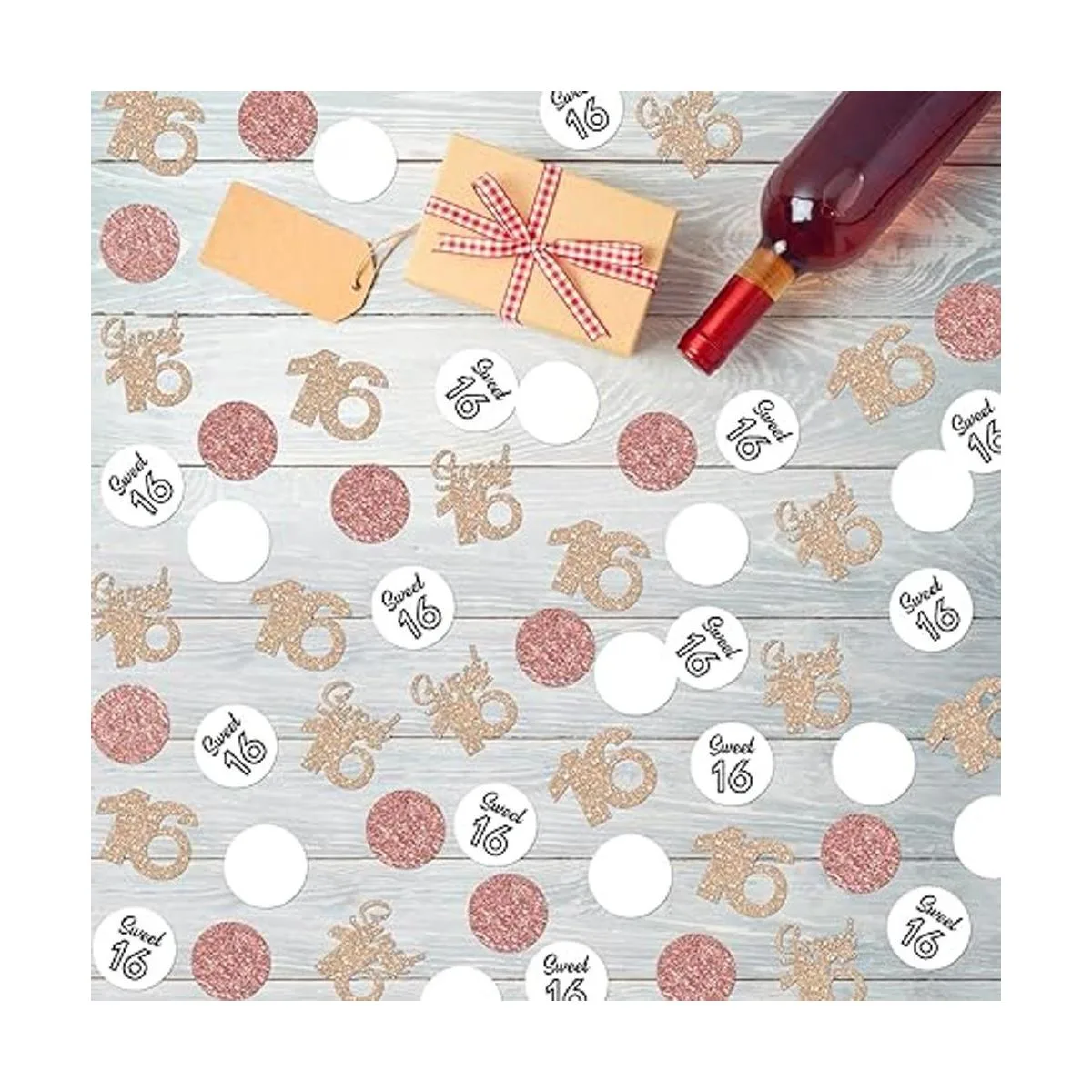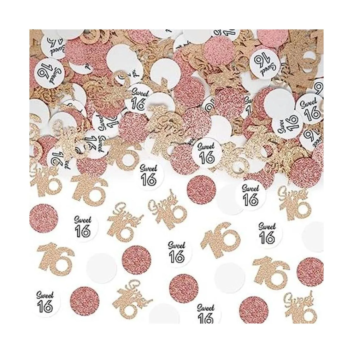 Sweet 16 confeti, confeti de mesa de oro rosa, confeti de feliz cumpleaños para mesa dulce 16 decoraciones de mesa, feliz confeti 16 decoraciones de cumpleaños, dulces 16 suministros de fiesta