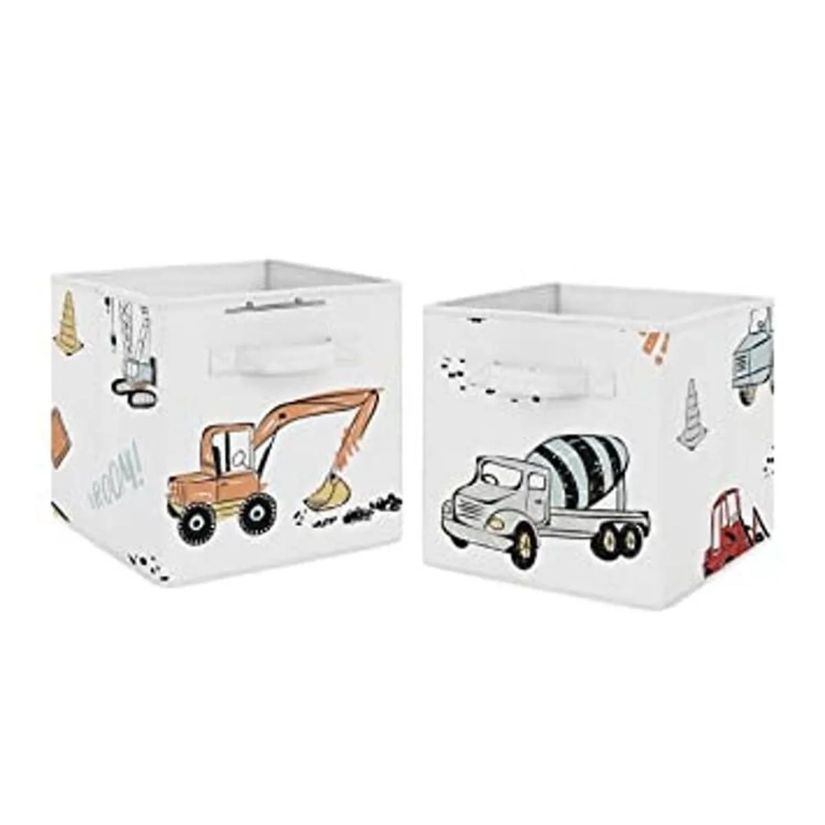 Sweet Jojo Designs Cajas de almacenamiento plegable de tela para camión de construcción 2 unidades, color gris, amarillo, naranja, rojo y azul