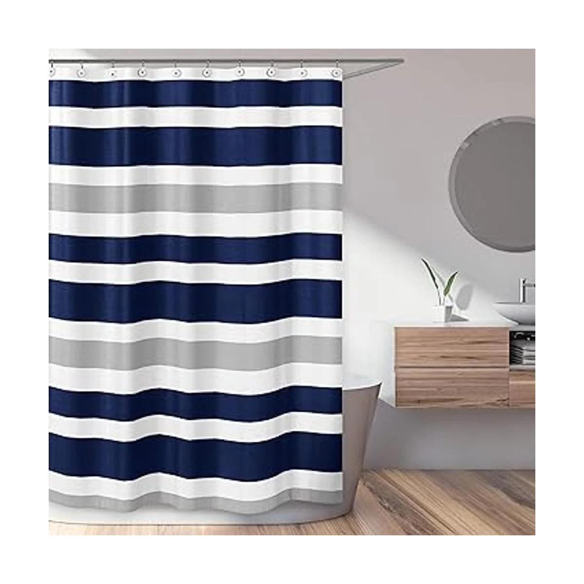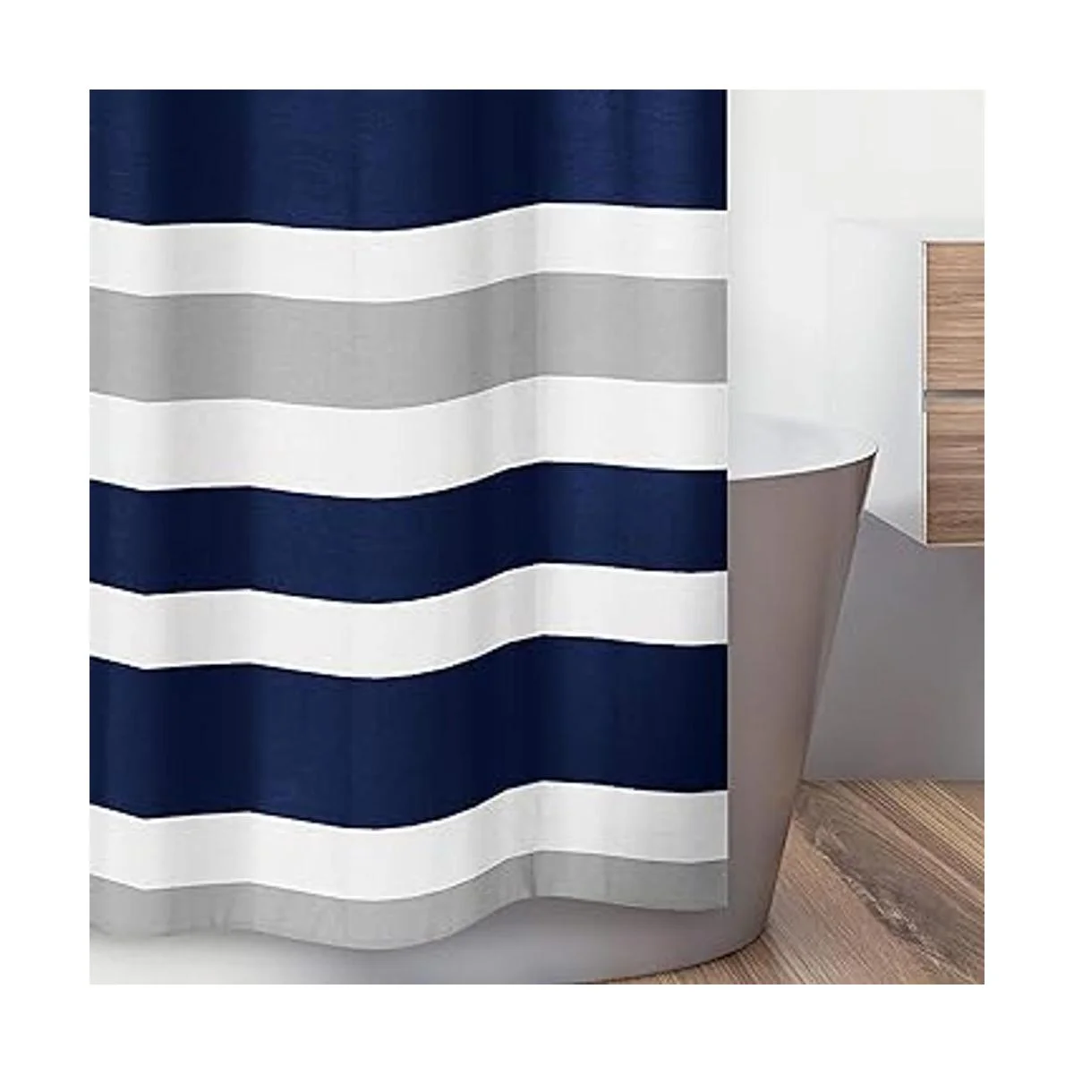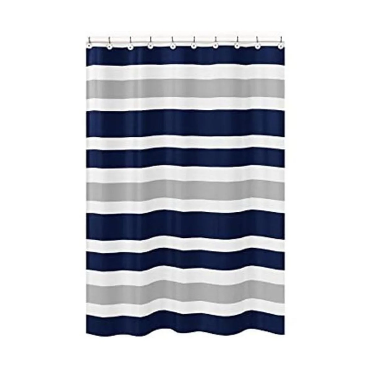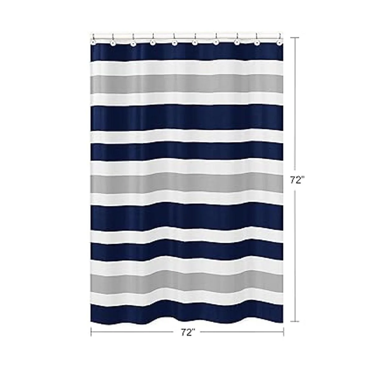 Sweet Jojo Designs Cortina de ducha con diseño de rayas, color azul marino, gris y blanco