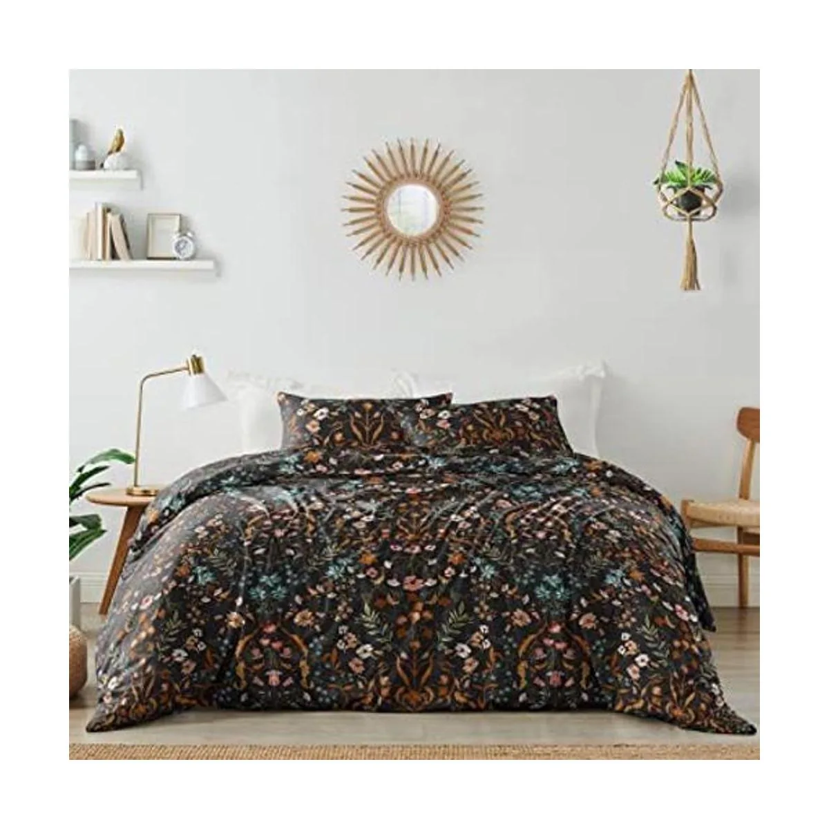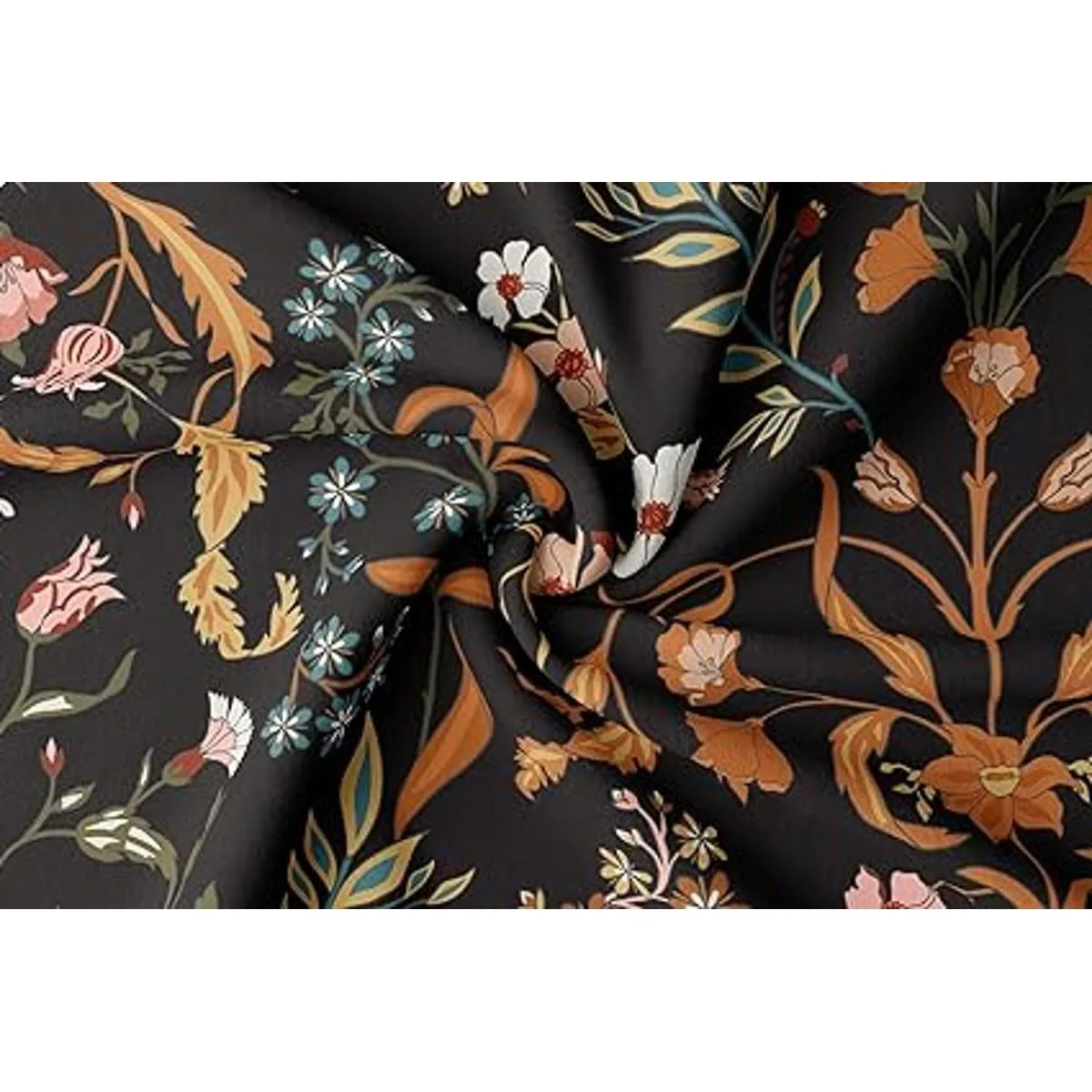 Diseño: jardín bohemio de flores silvestres negro y naranja patrón floral crea un aspecto rústico y vintage. Este diseño de cabaña complementará cualquier dormitorio de tu hogar.