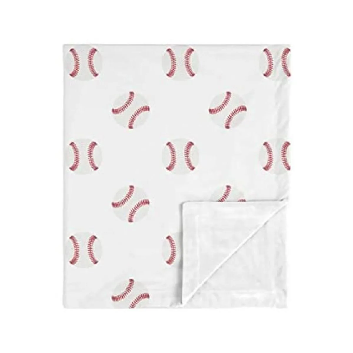 Sweet Jojo Designs Parche de béisbol deportivo para bebé niño recibió seguridad manta para bebé recién nacido o niño bebé asiento de coche cochecito suave Minky rojo y blanco