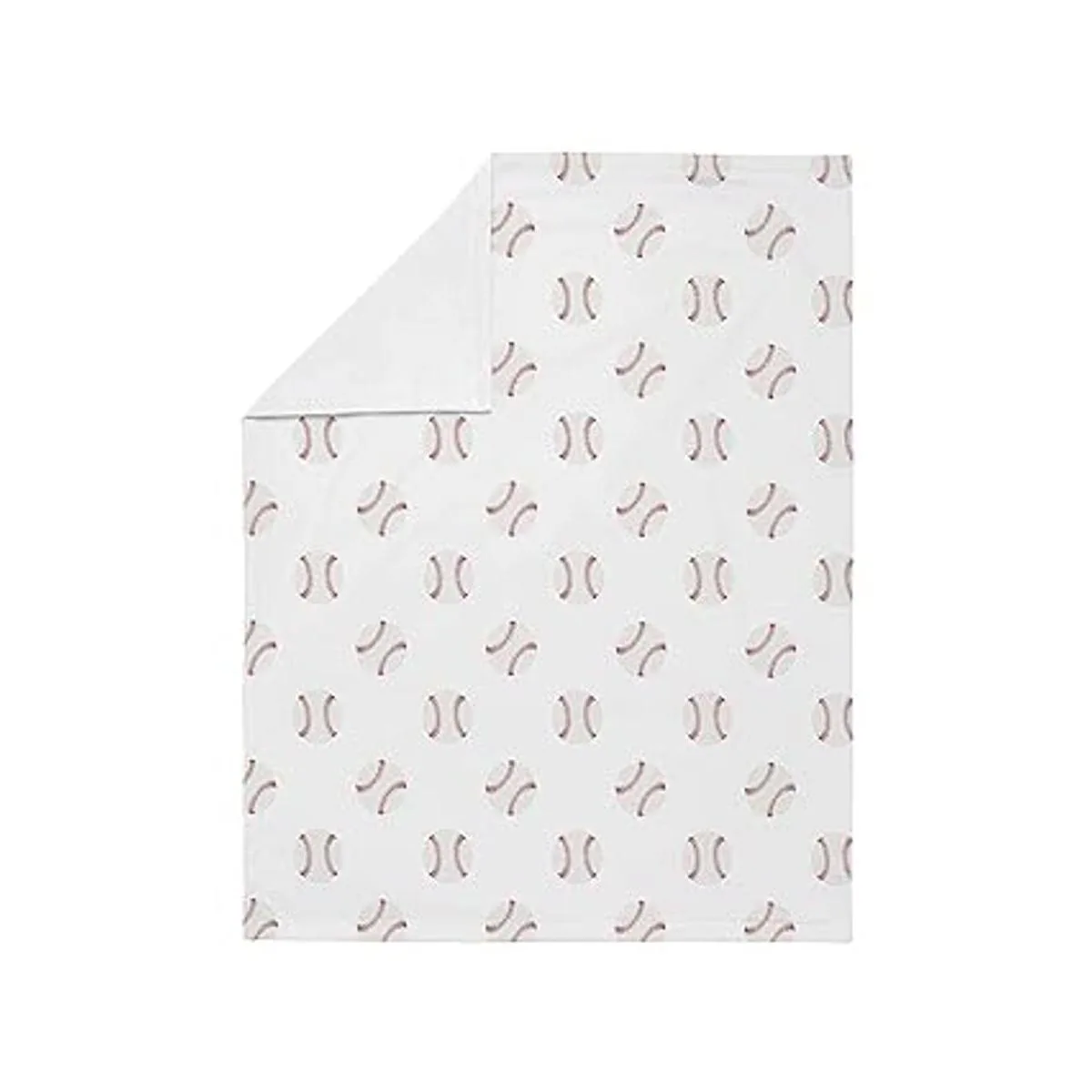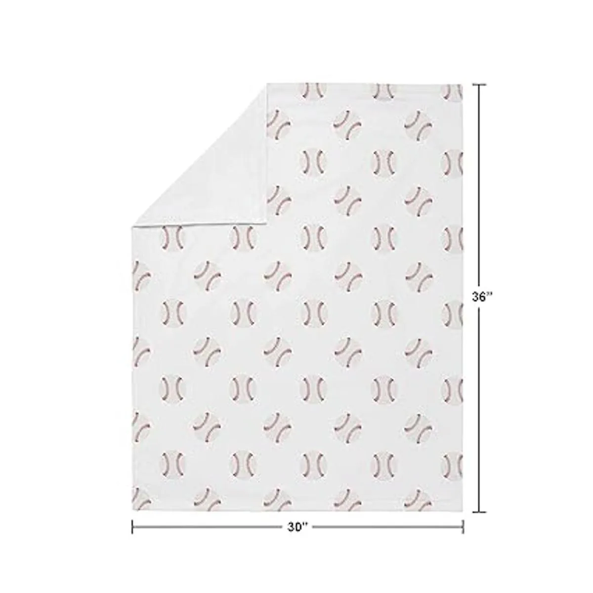 La manta está diseñada con una impresión de microfibra cepillada de béisbol roja y blanca y se invierte a un suave visón blanco