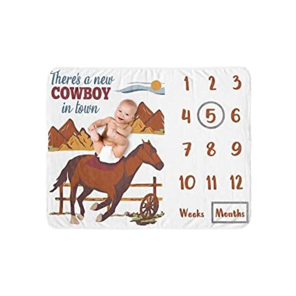Sweet Jojo Designs Wild West Cowboy Boy Milestone Manta mensual recién nacido, alfombra de crecimiento del primer año, recuerdo de la ducha del bebé, imagen de regalo rojo azul y marrón