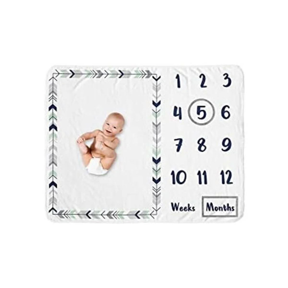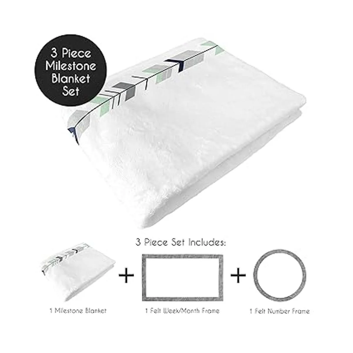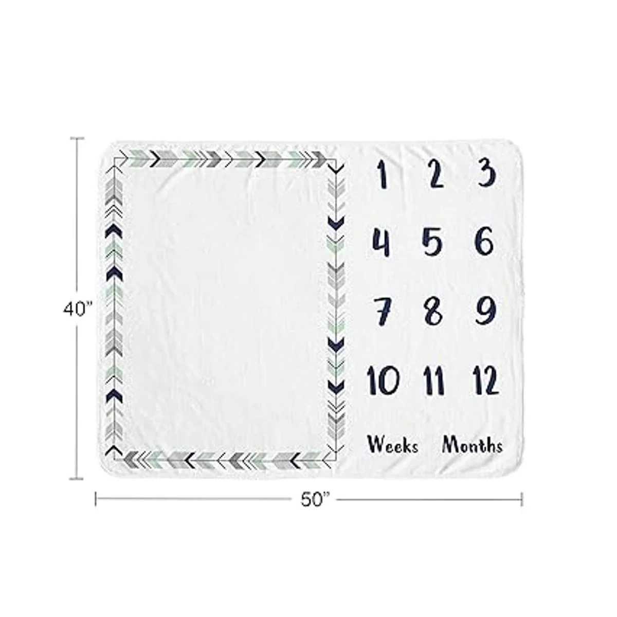 Sweet Jojo Designs Woodland Arrow Boy or Girl Milestone Manta mensual recién nacido, alfombra de crecimiento del primer año, recuerdo de la ducha del bebé, imagen de regalo gris, azul marino y verde menta género neutral