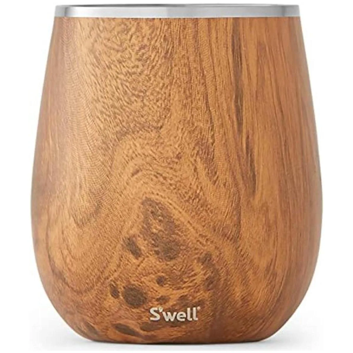 TRIPLELAYERED INSULATION: Swell Barware Wine Tumbler Teakwood 9oz stainless steel tumblers feature triplelayered, vacuuminsulated construction, designed to keep your favorite wine cool for longer with our exclusive ThermaSwell Technology. Each Tumbler features unique colors, prints, patterns and textures, all while delivering superior functionality. Handwash only.