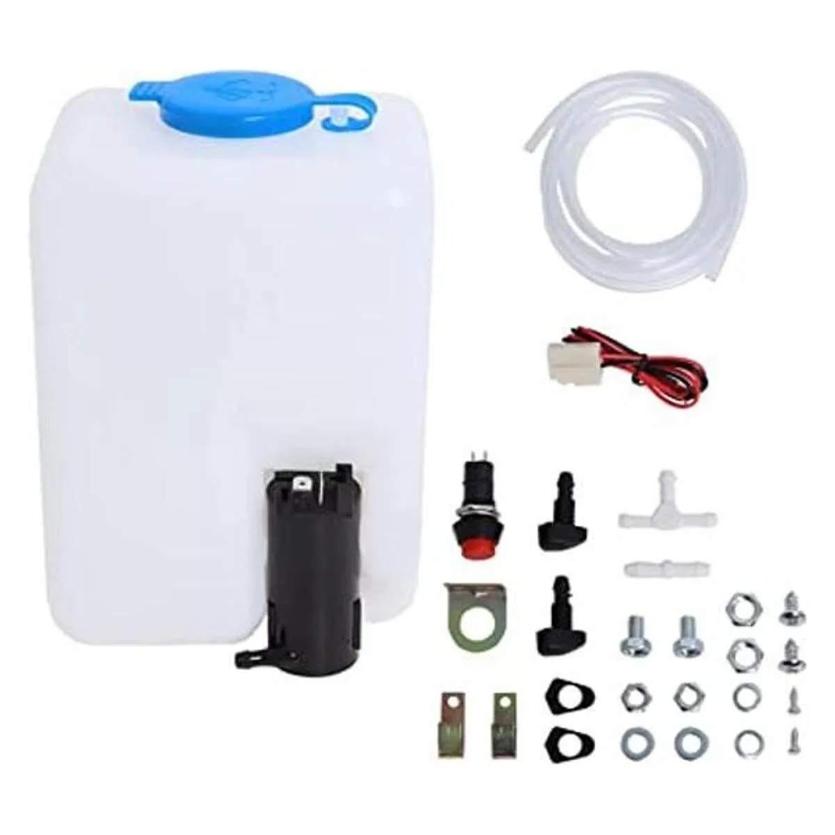 el paquete incluye: 1 botella de limpiaparabrisas, 1 tubo, 2 telares de cableado, 1 interruptor de botón y 2 chorros.