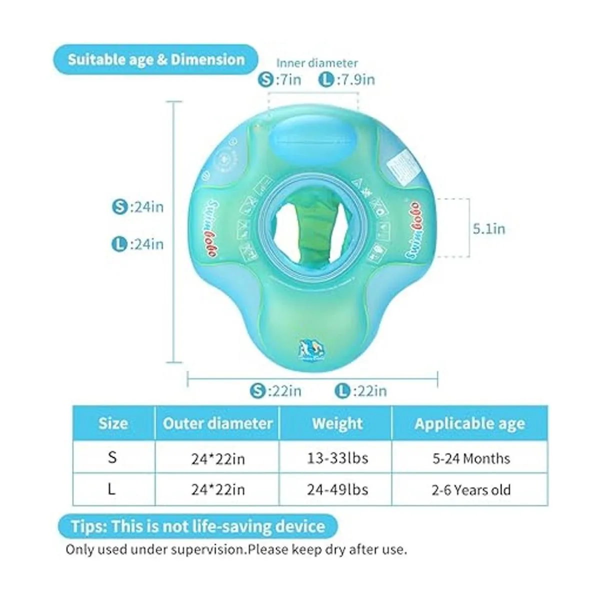 Adecuado para multitud Este flotador inflable para bebé es adecuado para bebés de 2 a 6 años de edad, y puede soportar bebés con 24 a 49 libras. Consulta nuestra imagen del producto con la dimensión, o también puedes ponerte en contacto con nosotros, te recomendamos el tamaño para tu bebé.